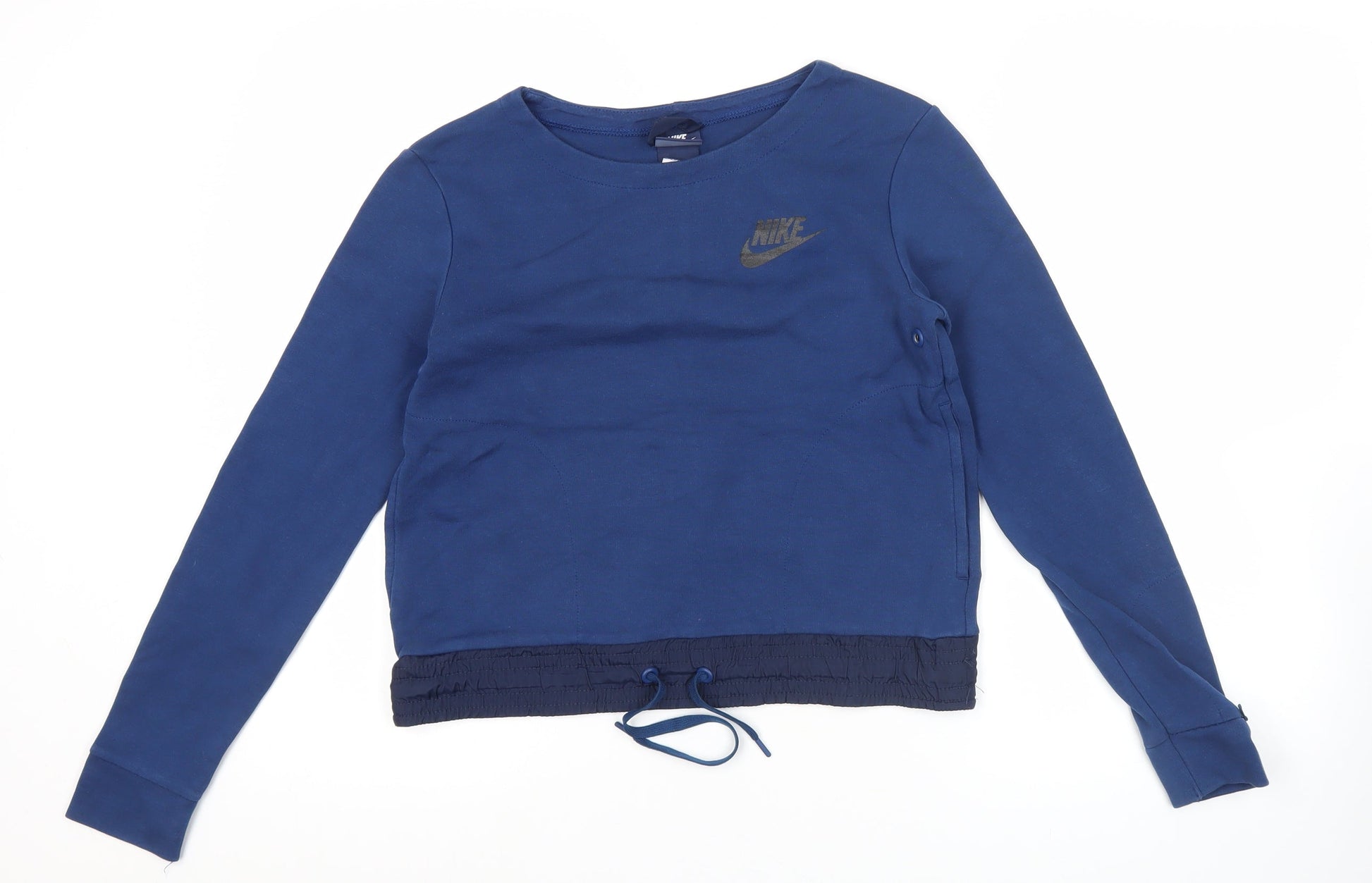 Nike Women’s Blue Pullover Sweatshirt S Logo Drawstring Activewear