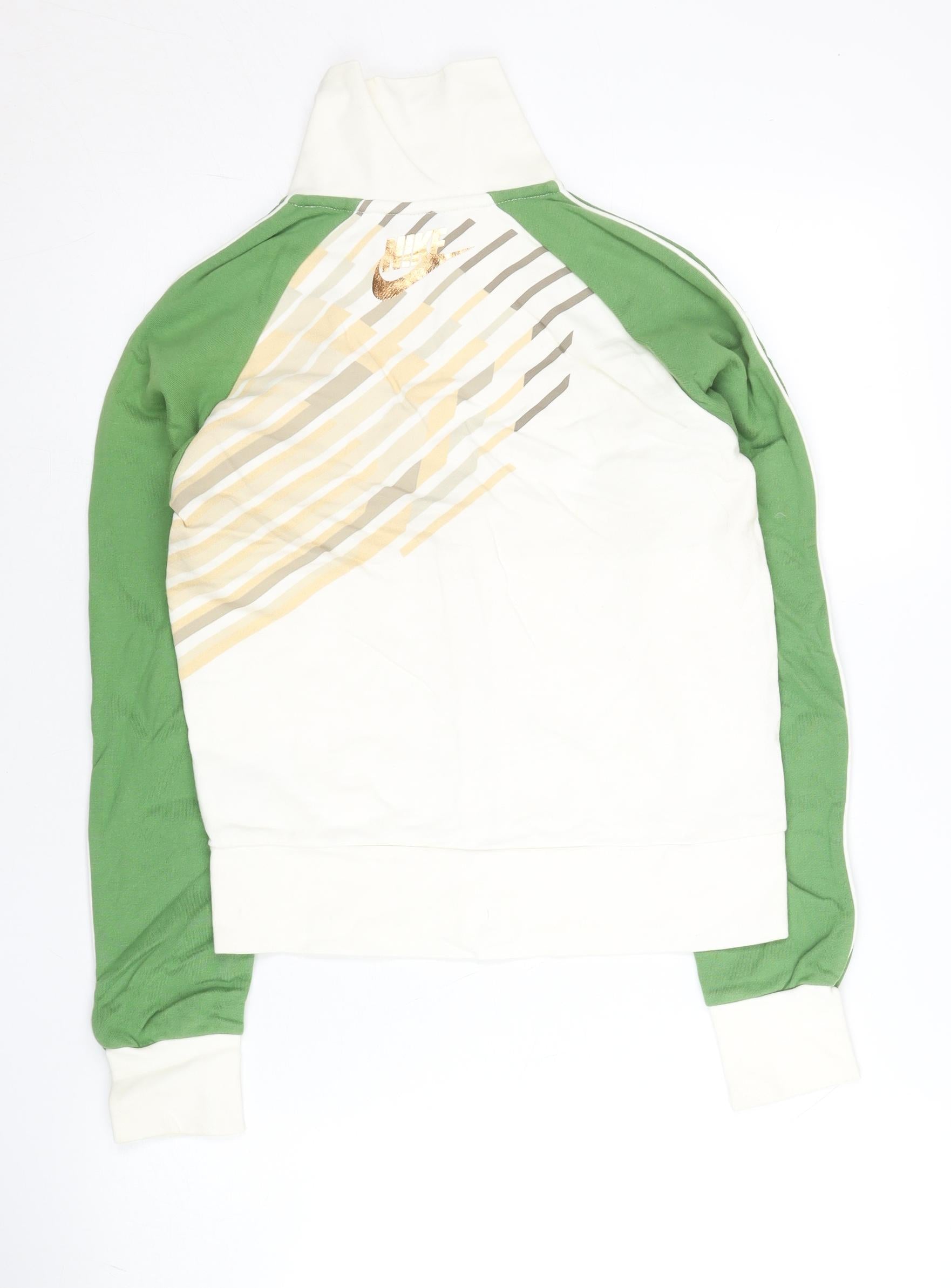 Nike Women’s Green White Gold Track Jacket M Cotton Full Zip