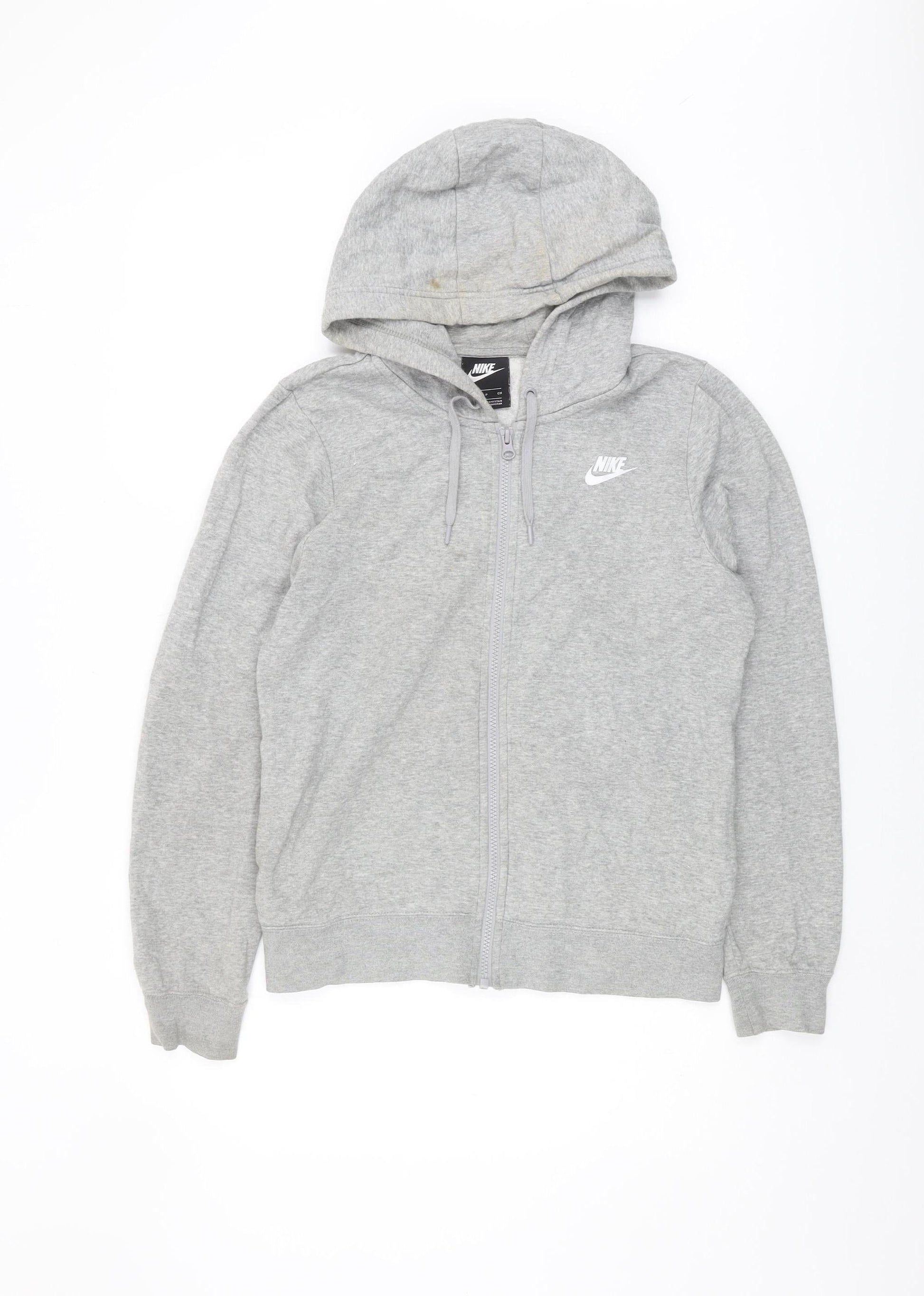 Nike Women’s Grey Full Zip Hoodie S with Logo & Pockets