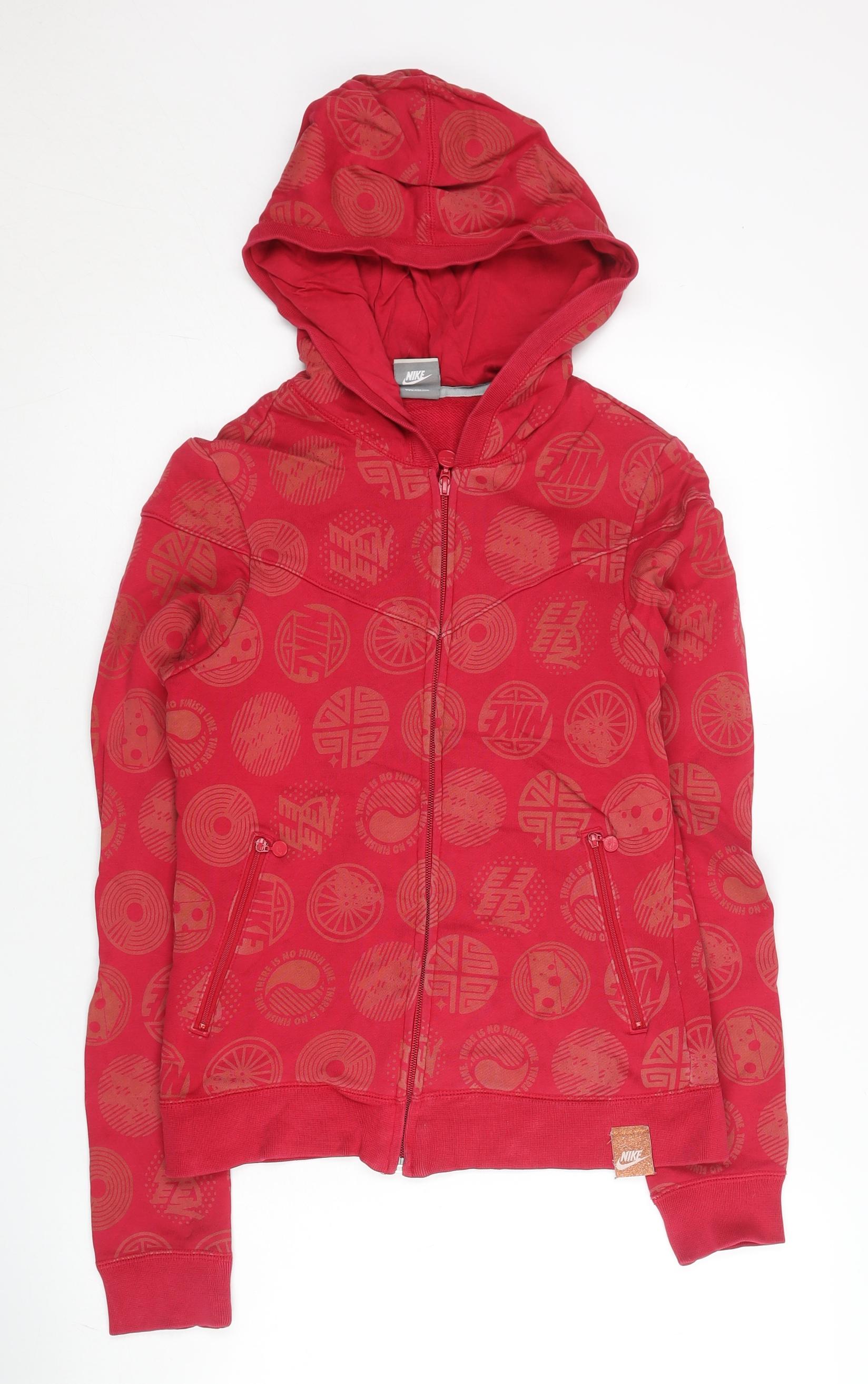 Nike Women’s Red Full Zip Hoodie L Cotton Graphic Print