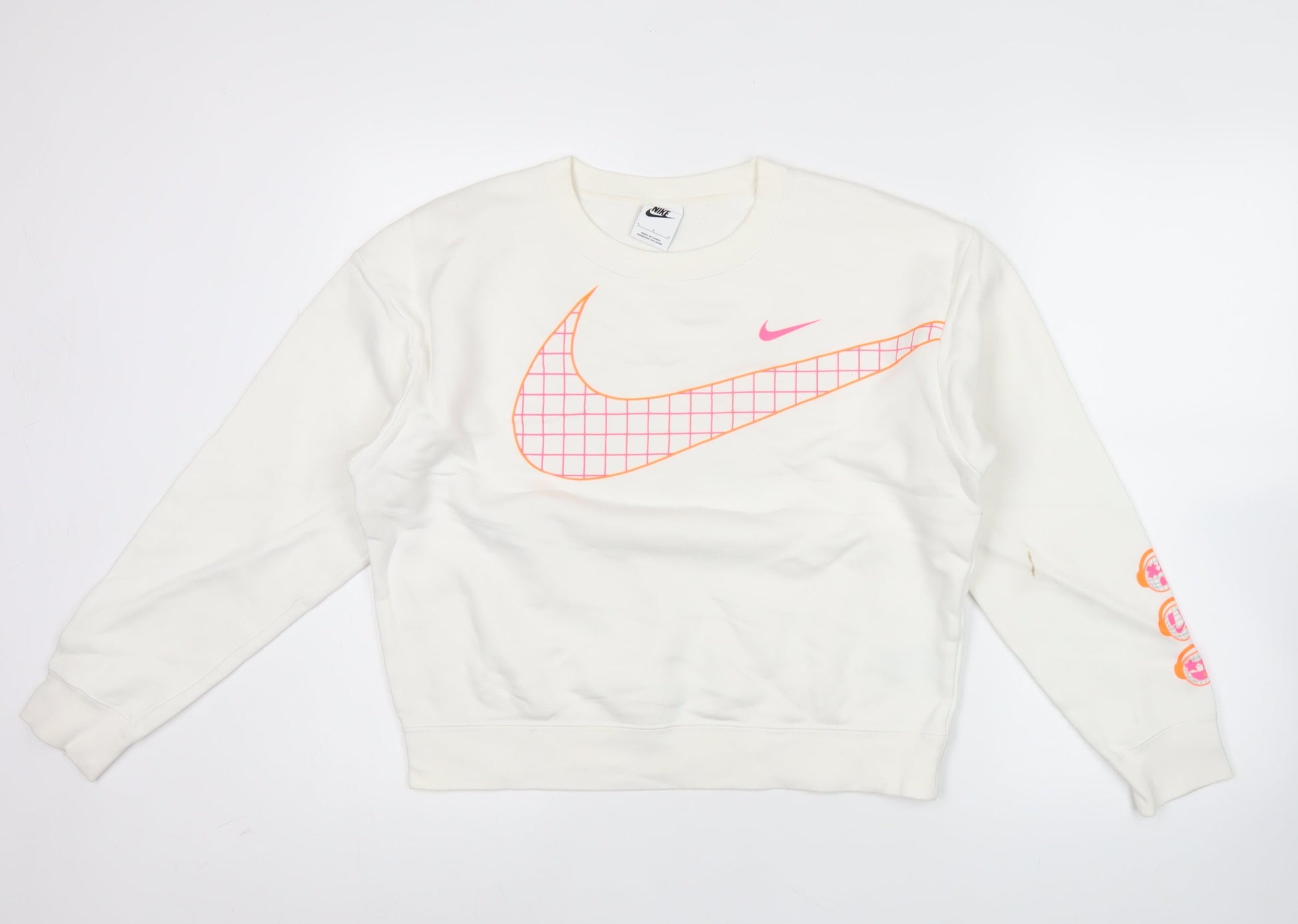 Nike Women’s White Graphic Logo Sweatshirt Size L Cotton Blend