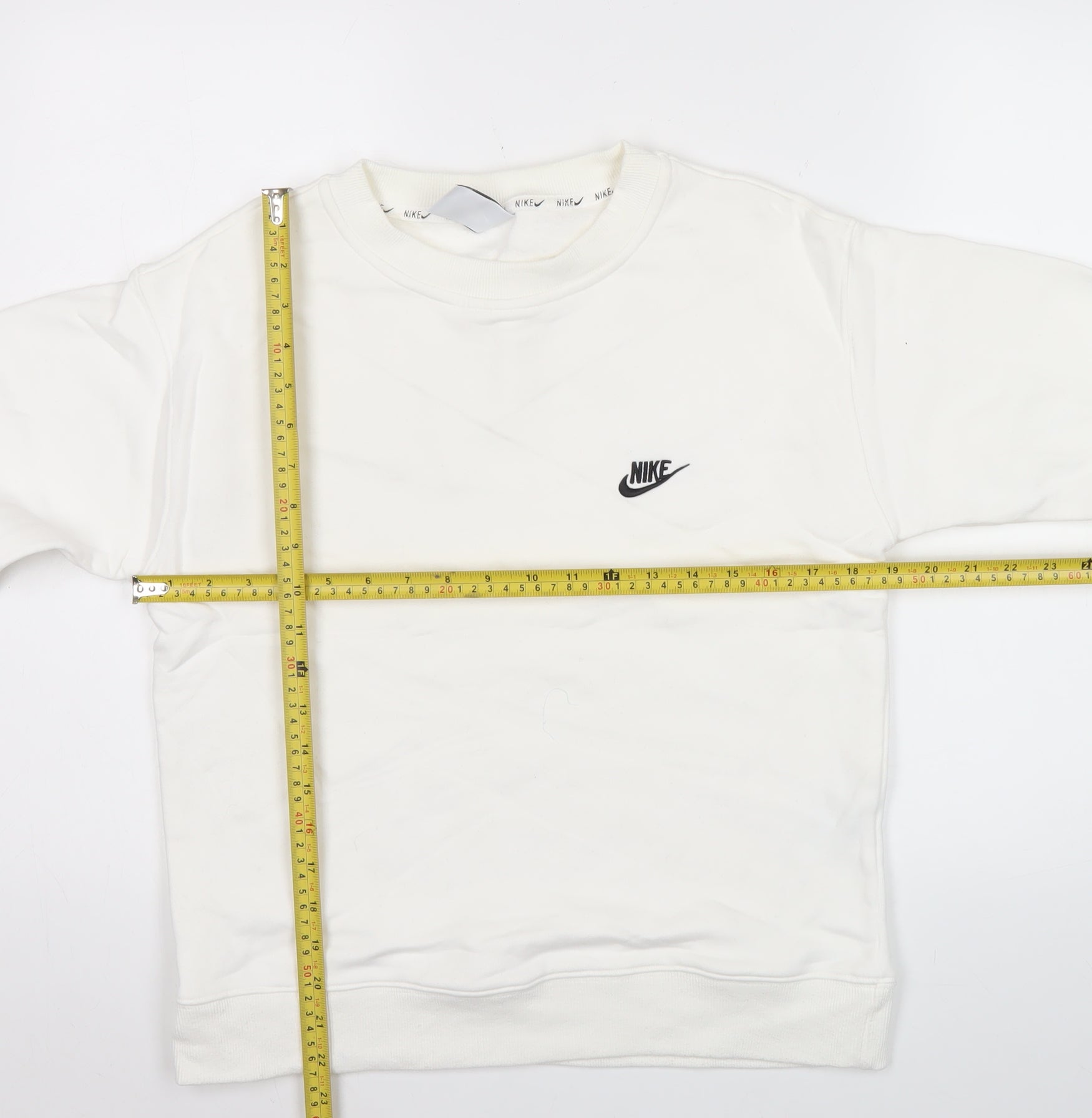 Nike Women White Small Crew Neck Sweatshirt Logo Long Sleeve