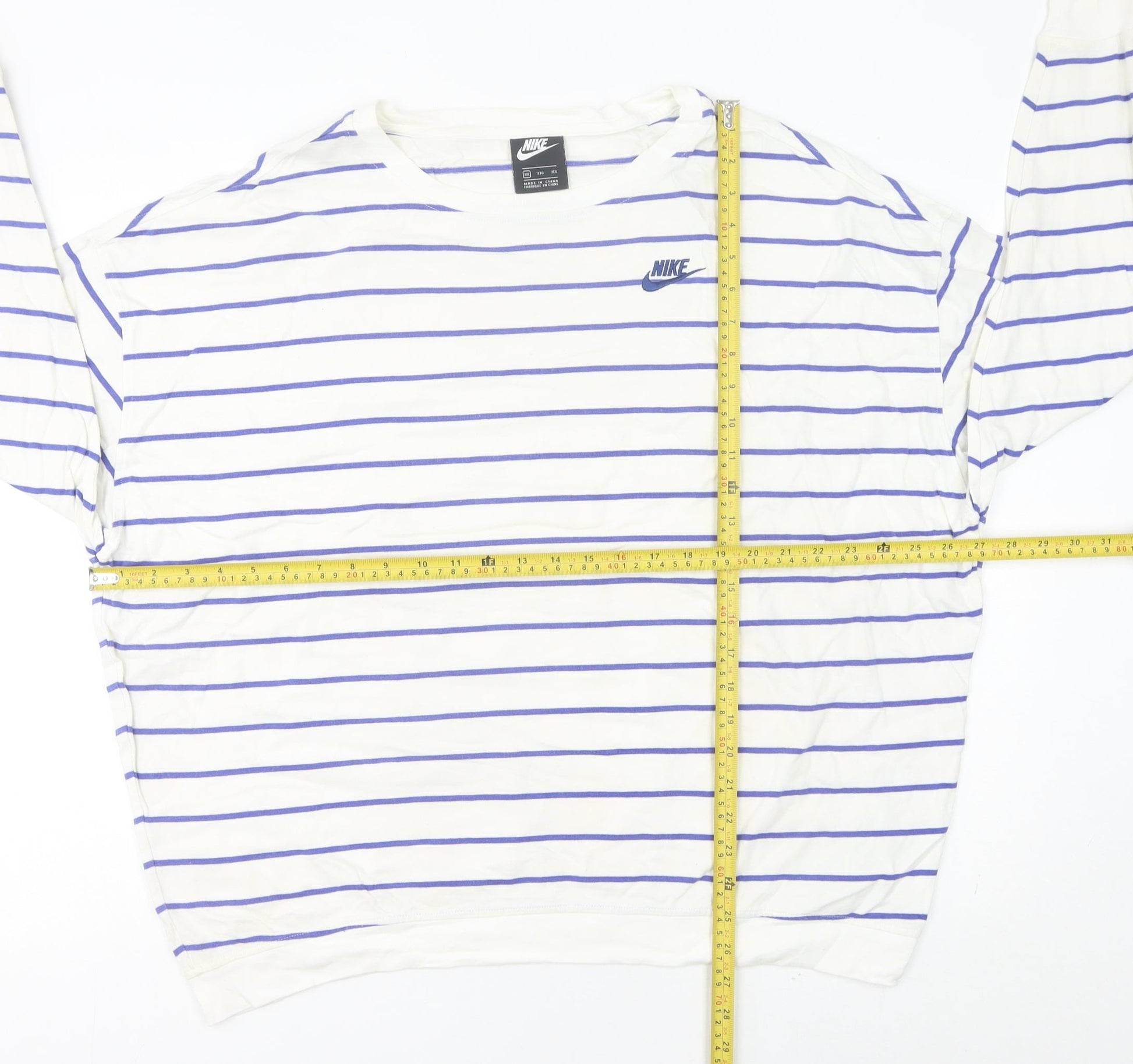 Nike Women White Striped Sweatshirt Size 16 UK Cotton Crew Neck