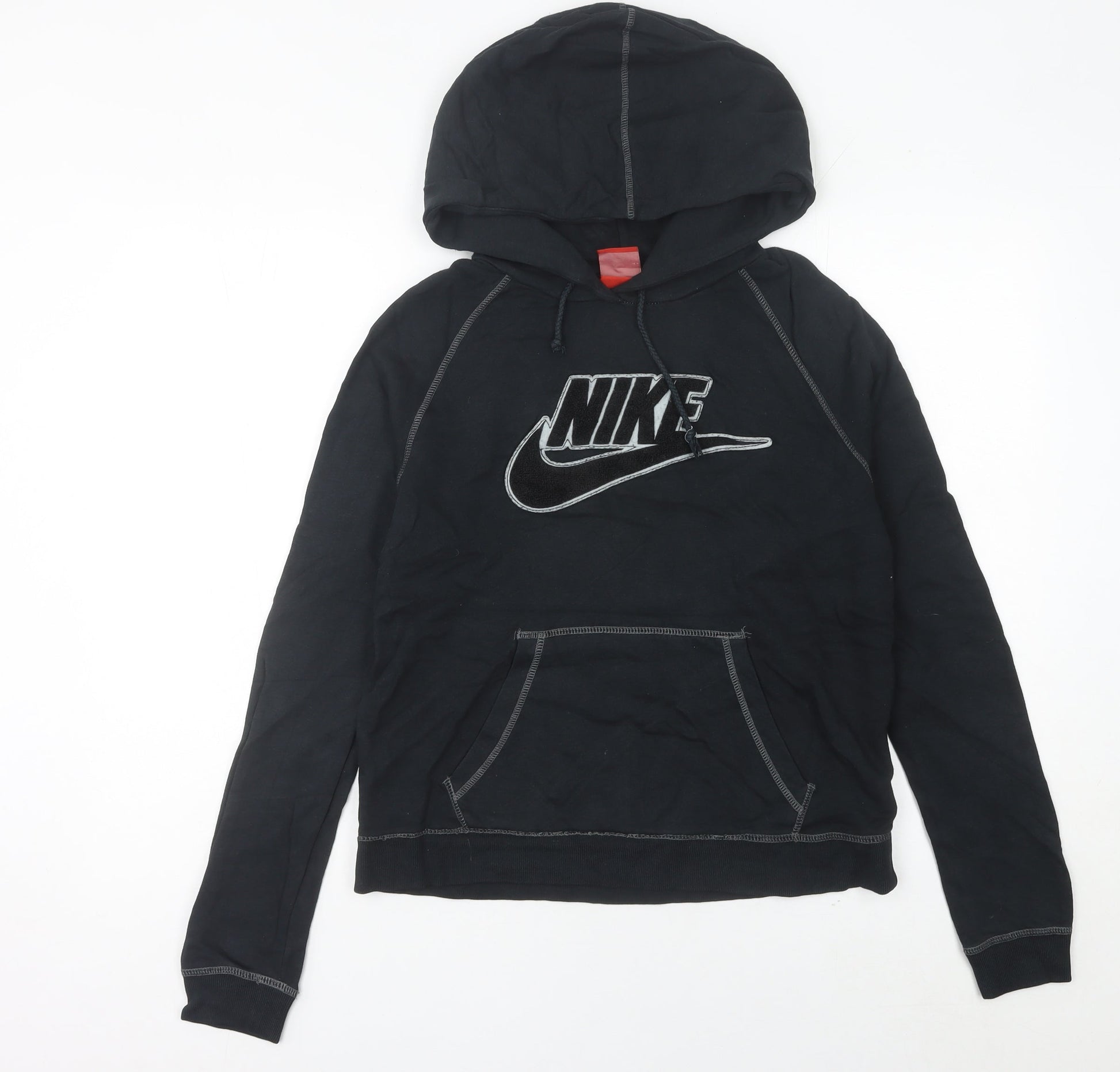 Nike Womens Black Hoodie Size 8 Pullover Sweatshirt Logo Graphic