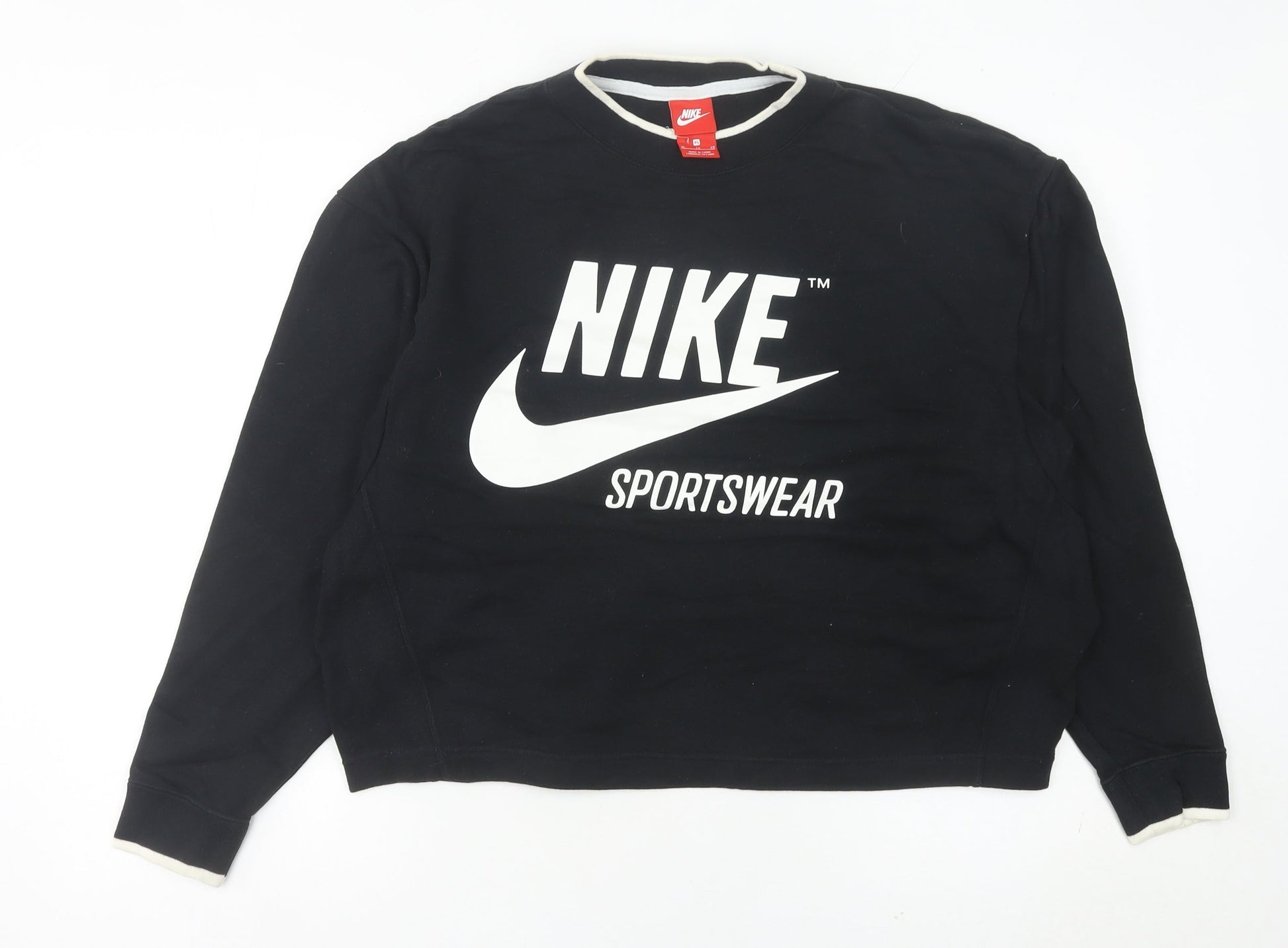 Nike Womens Black Logo Sweatshirt Size 12 Cotton Blend Pullover