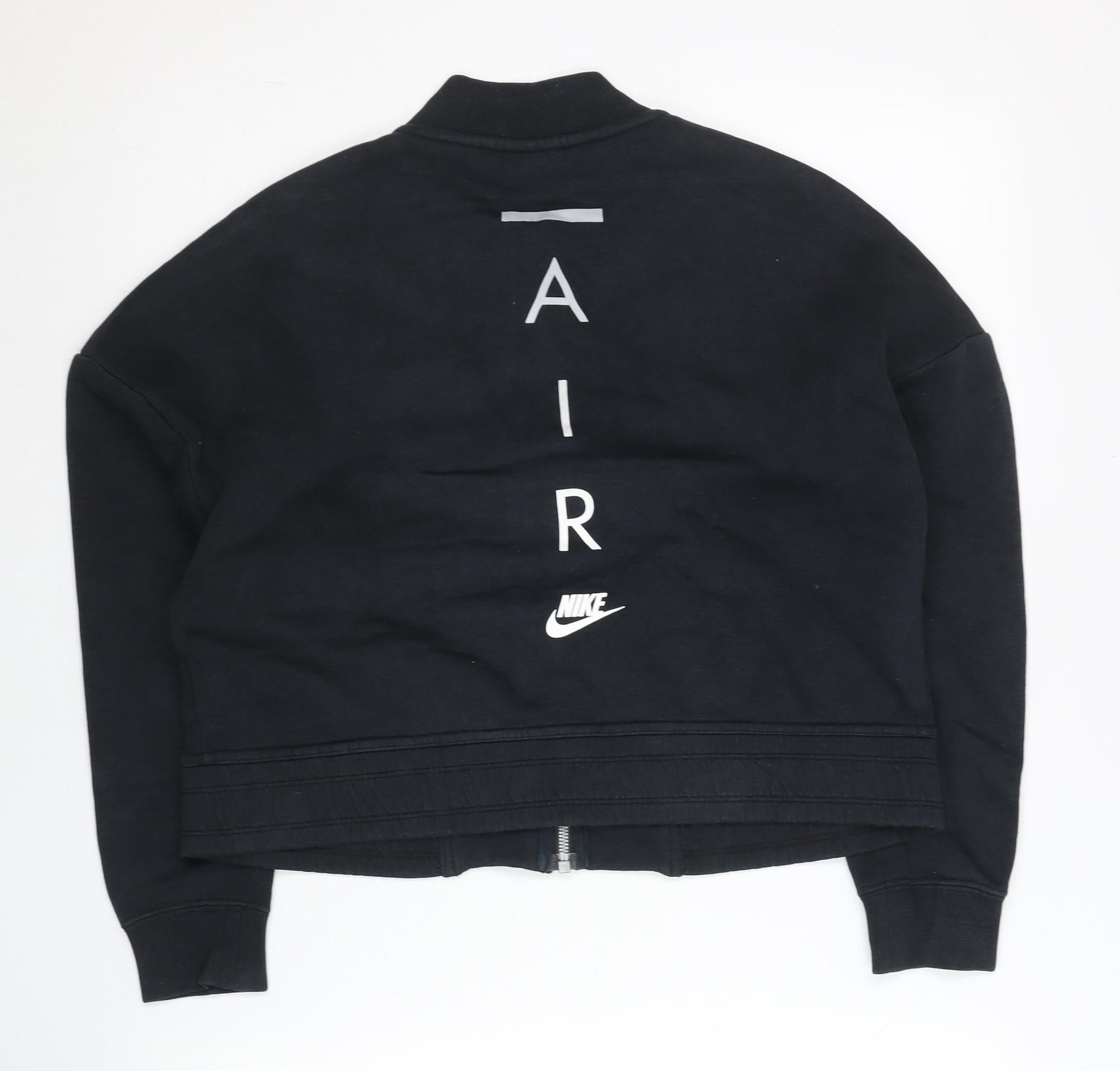 Nike Womens Black Small Varsity Jacket Full Zip Cotton Blend