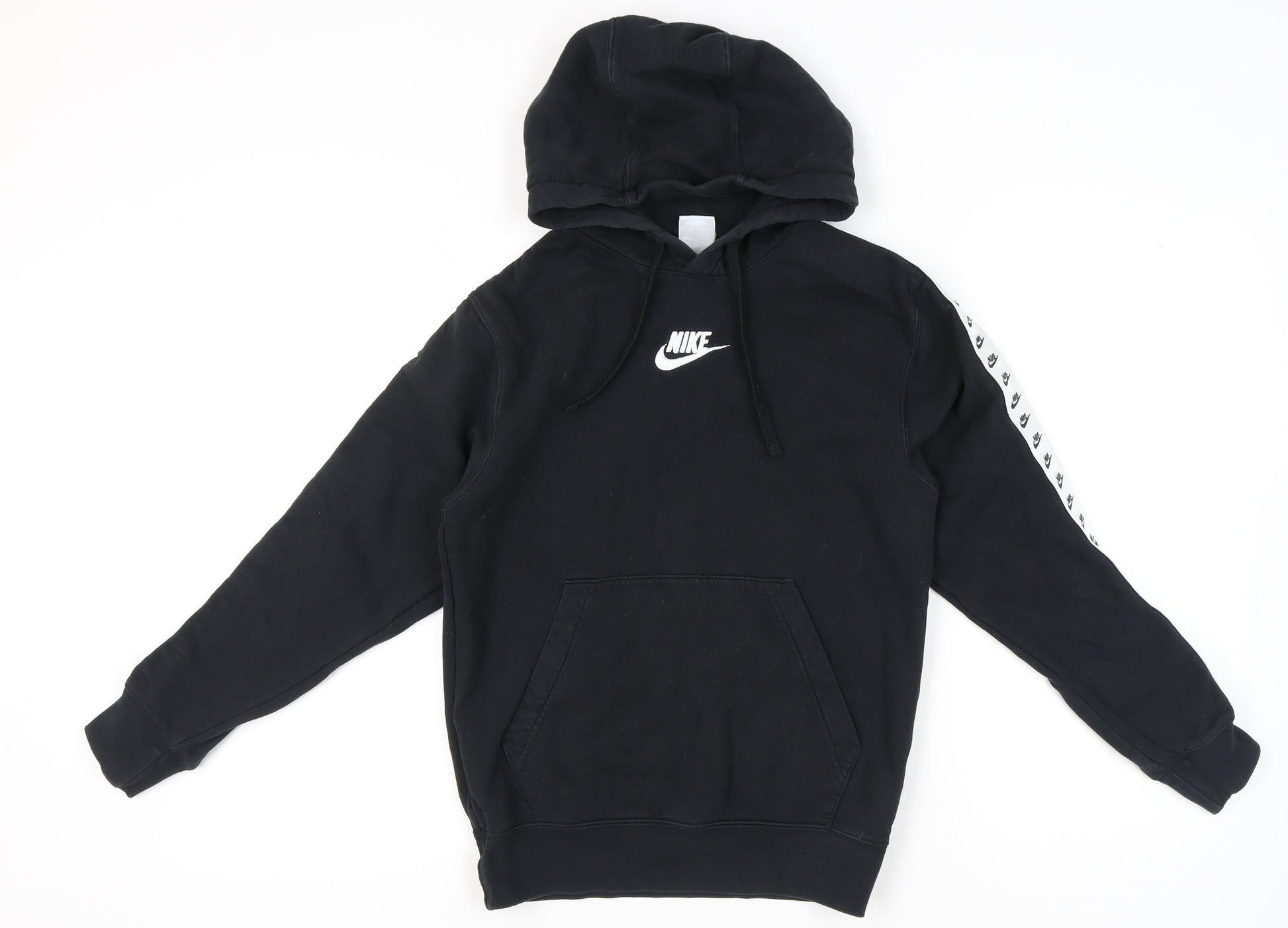 Nike Womens Black XS Pullover Hoodie Sweatshirt Logo Tape Sleeve