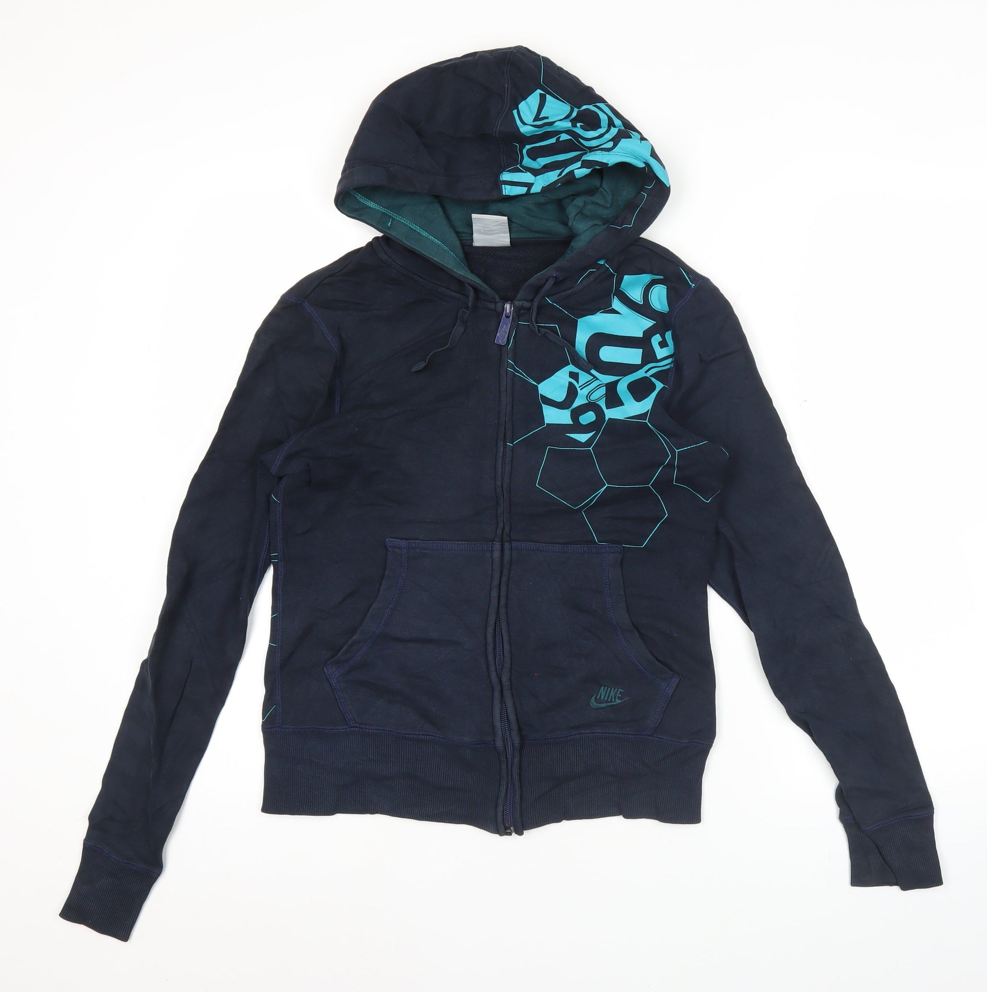 Nike Womens Blue Full Zip Hoodie Sweatshirt M Sports Graphic Long Sleeve