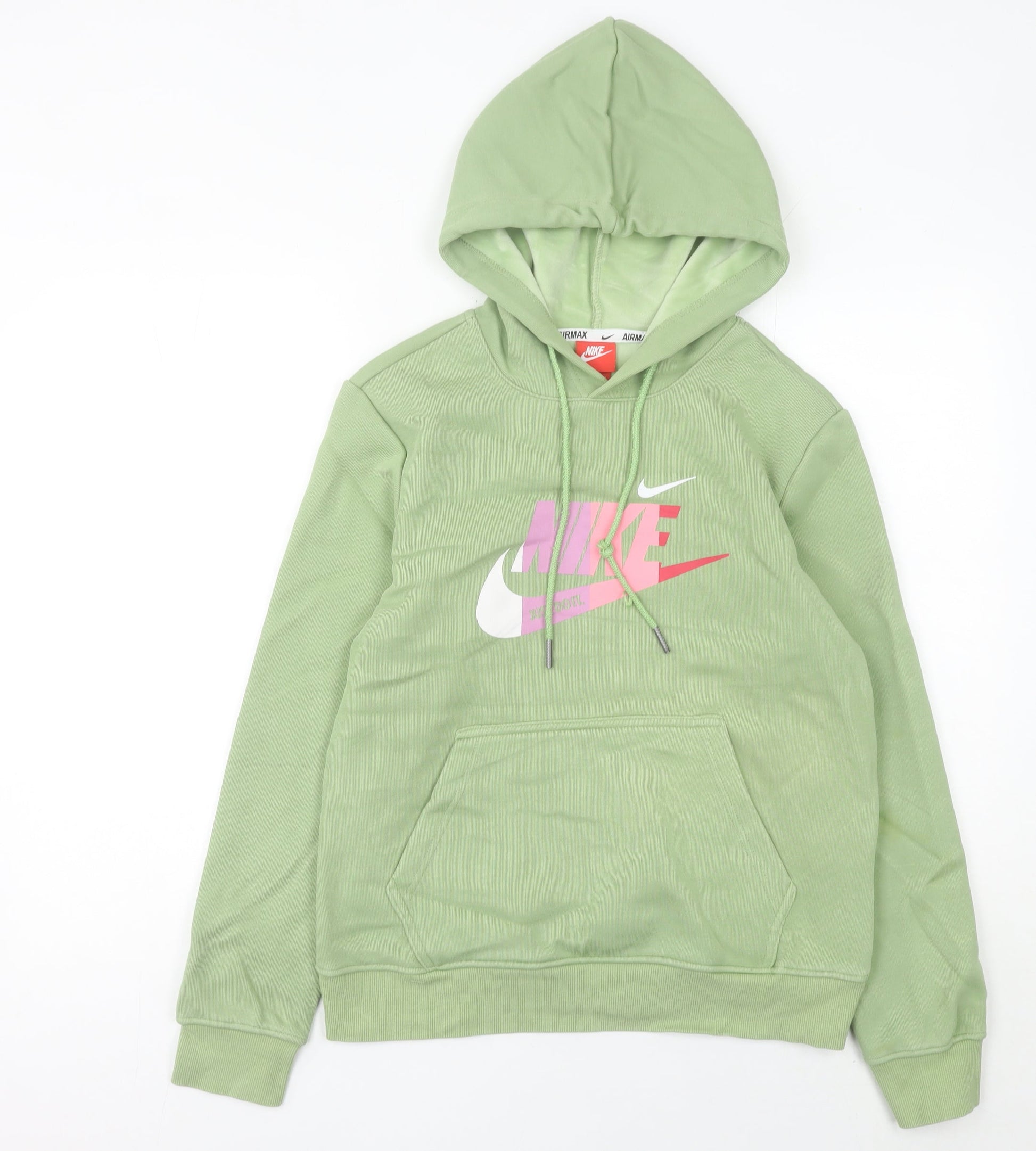 Nike Womens Green Hoodie UK 14 Pullover Long Sleeve Logo Graphic