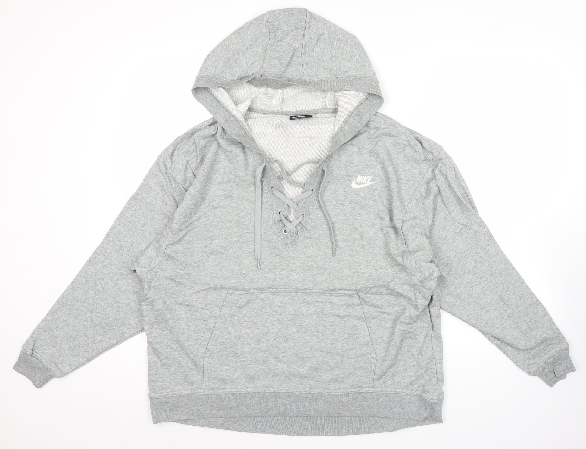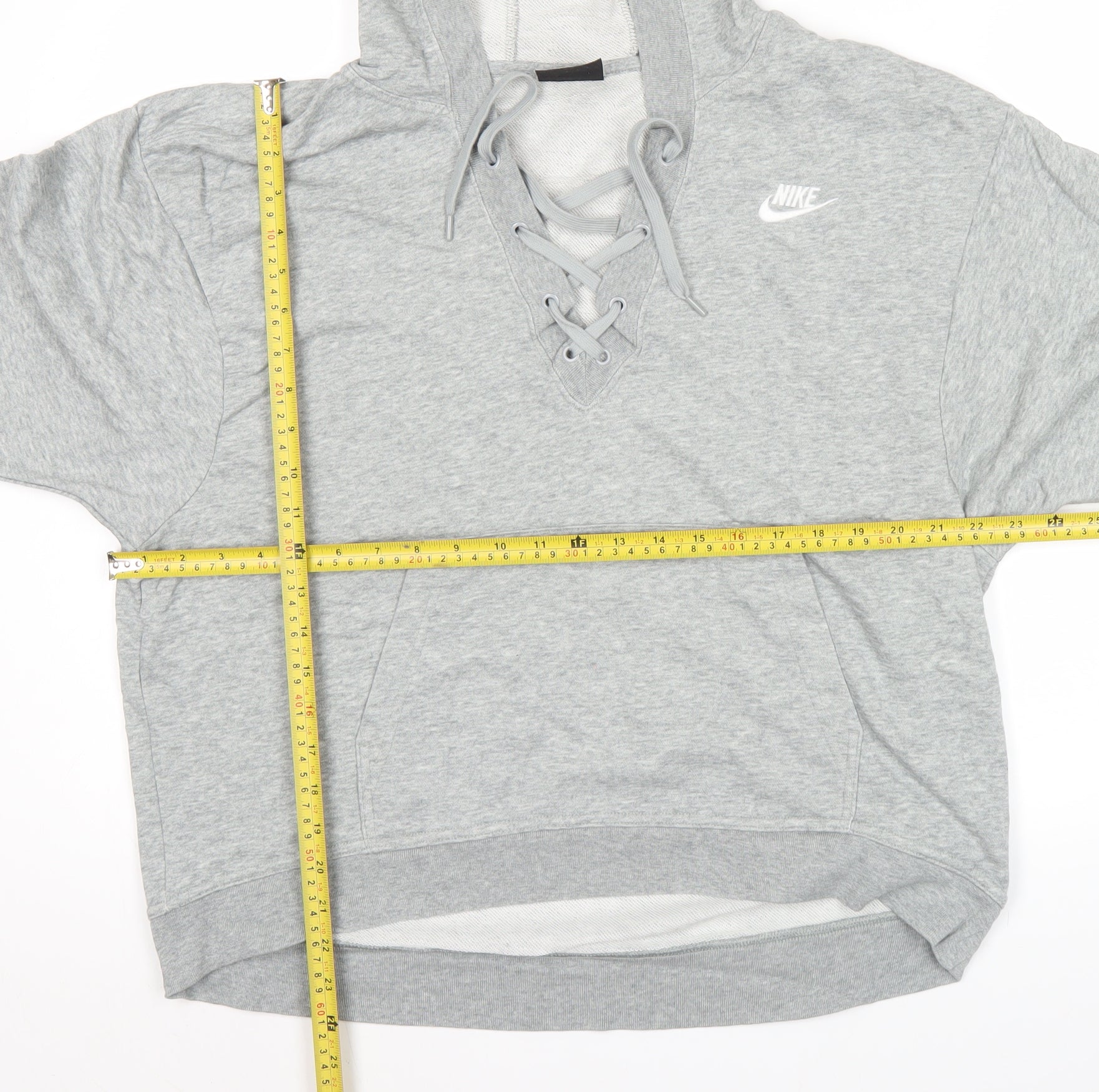 Nike Womens Grey Lace Up Hoodie Size L Long Sleeve Pullover