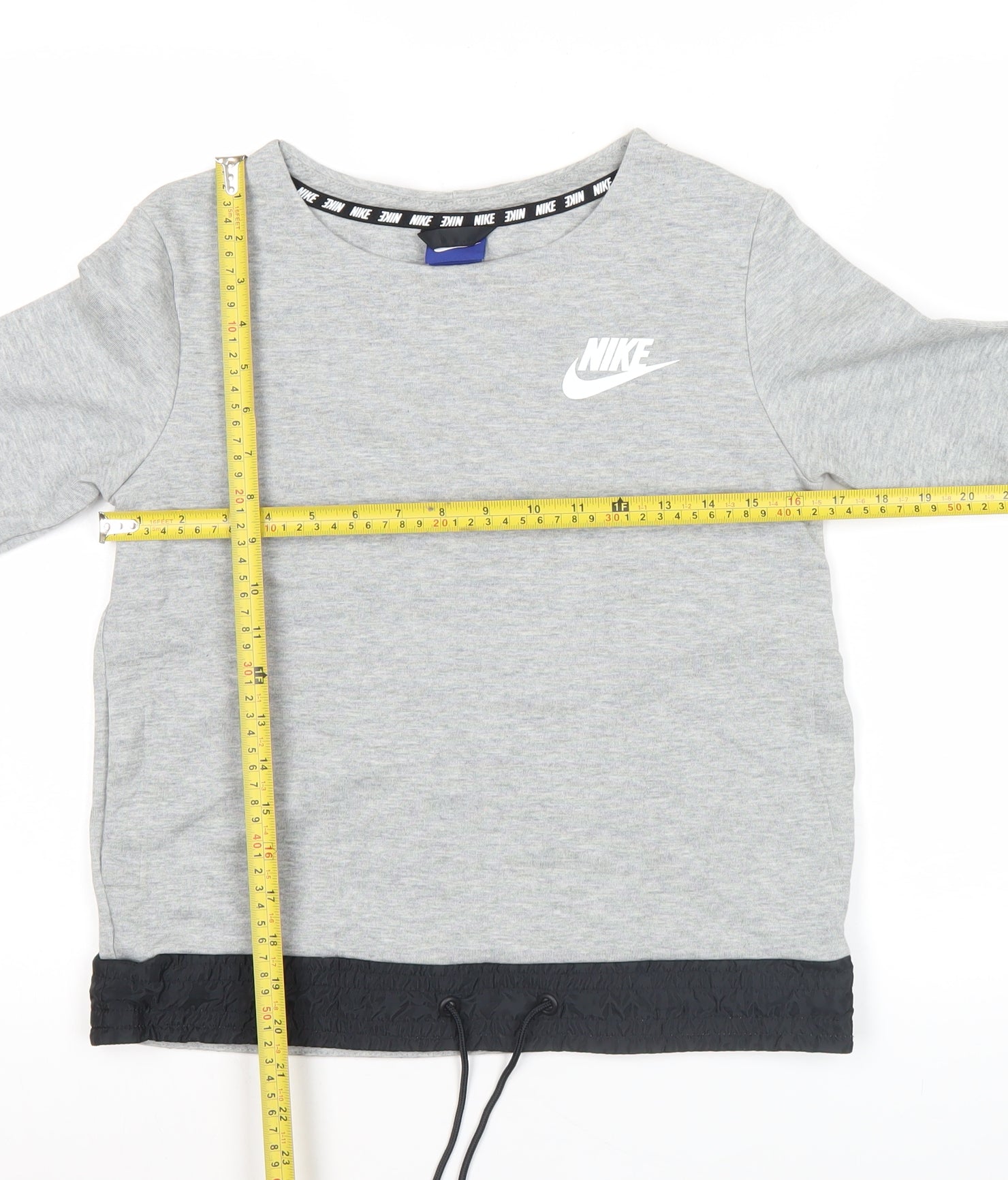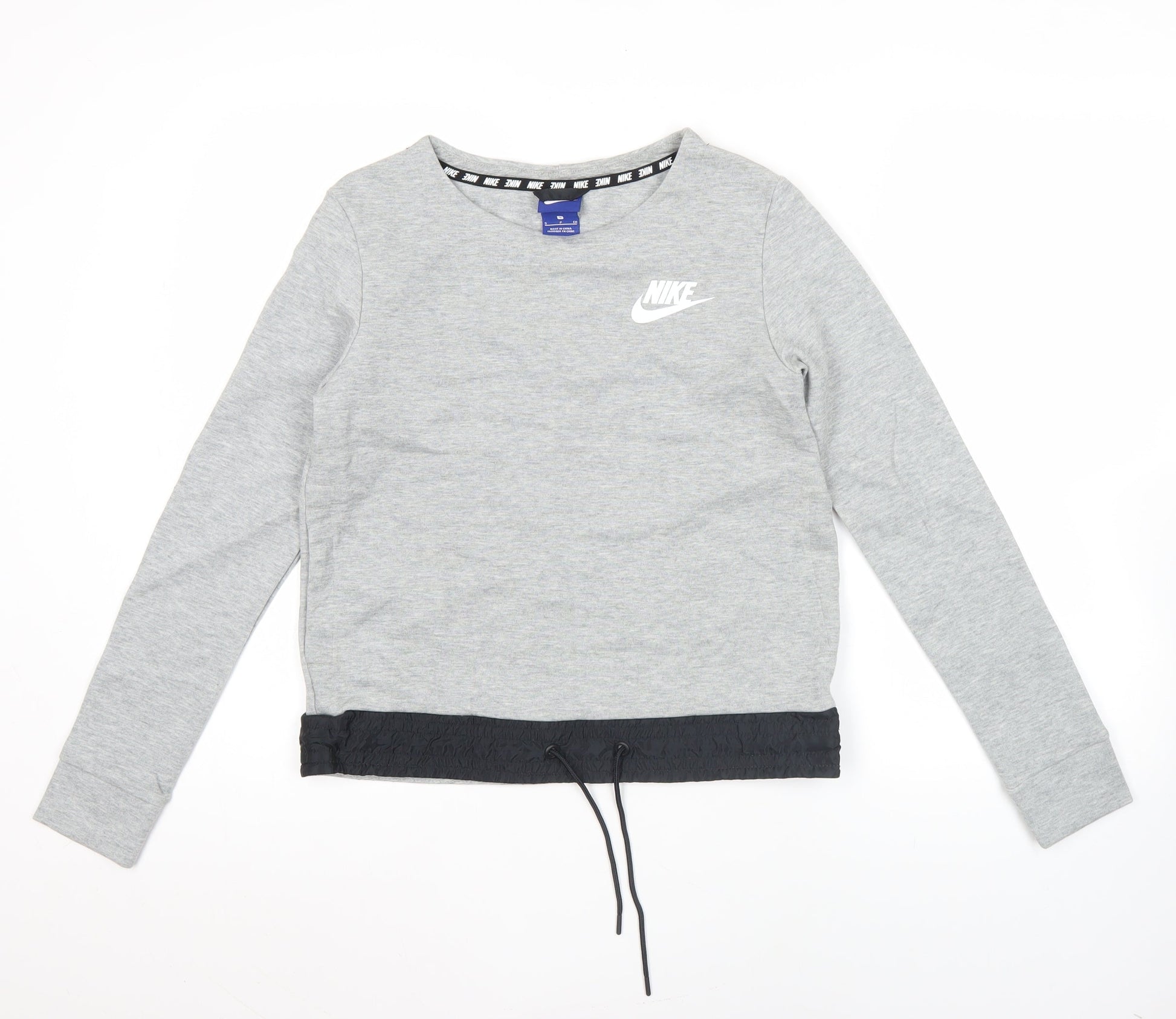 Nike Womens Grey Small Pullover Sweatshirt Logo Drawstring Hem