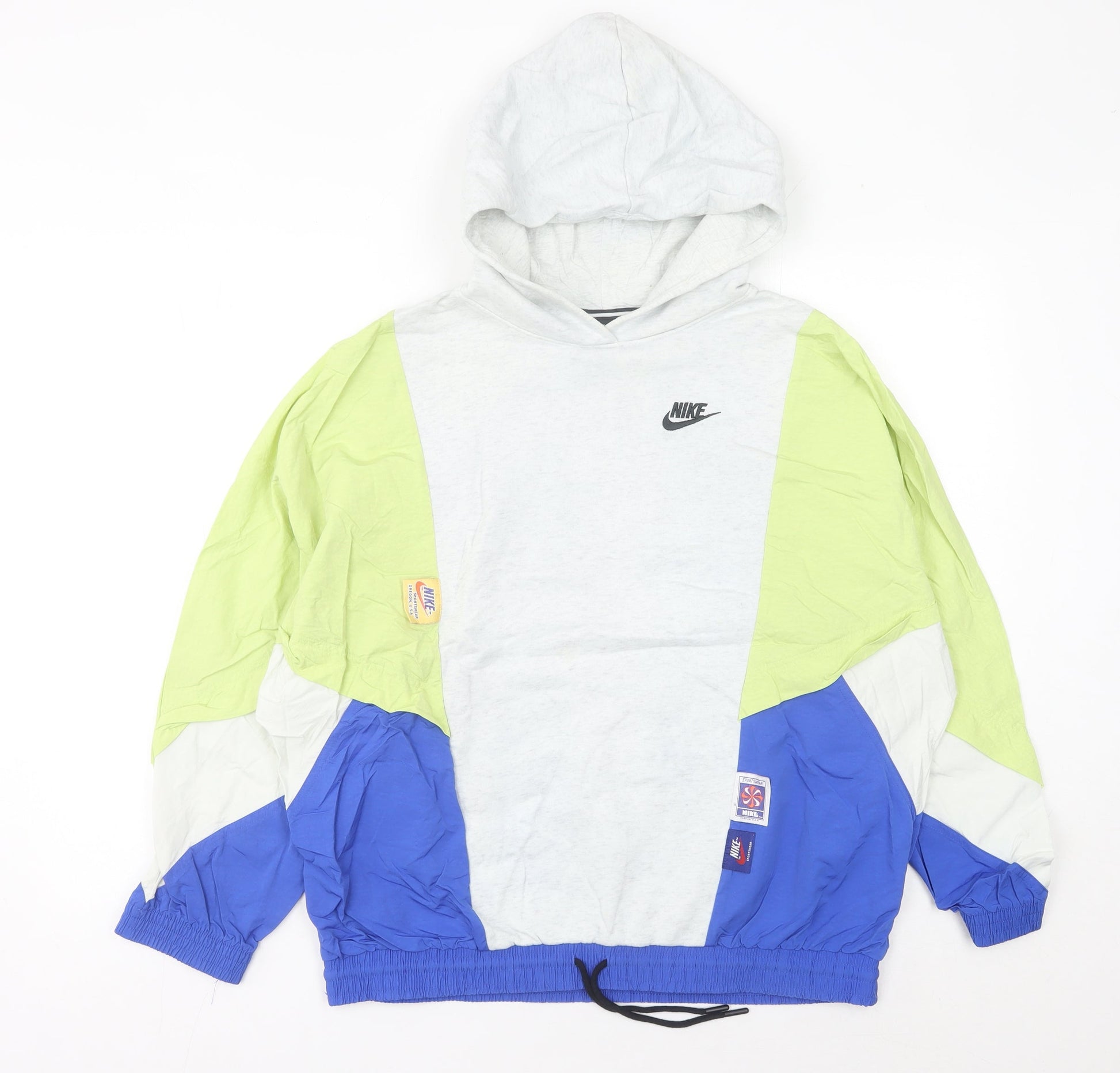 Nike Womens Hoodie Grey Green Blue Size 8 Pullover Colourblock Logo