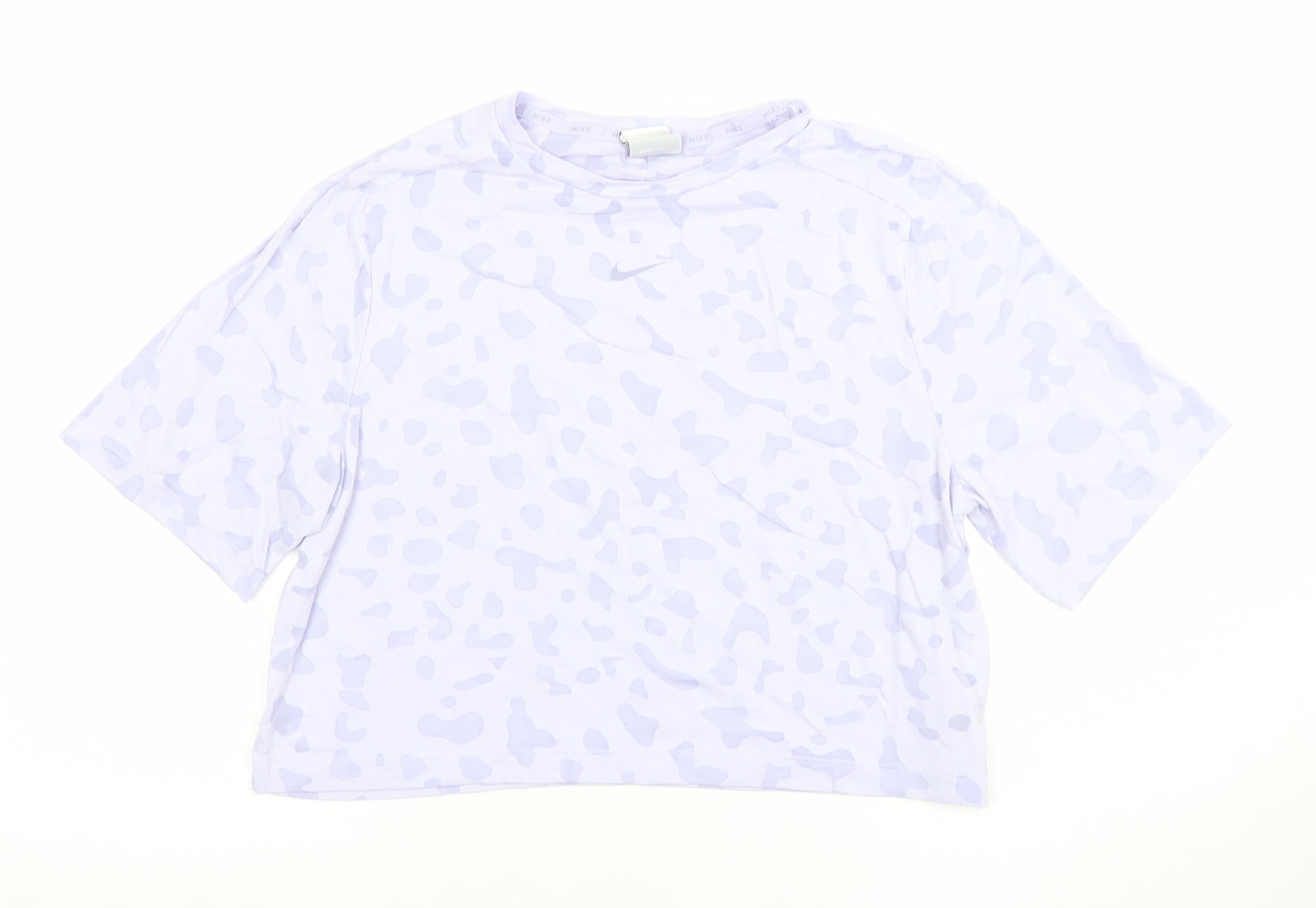 Nike Womens White Animal Print Cropped T-Shirt XL Relaxed Fit