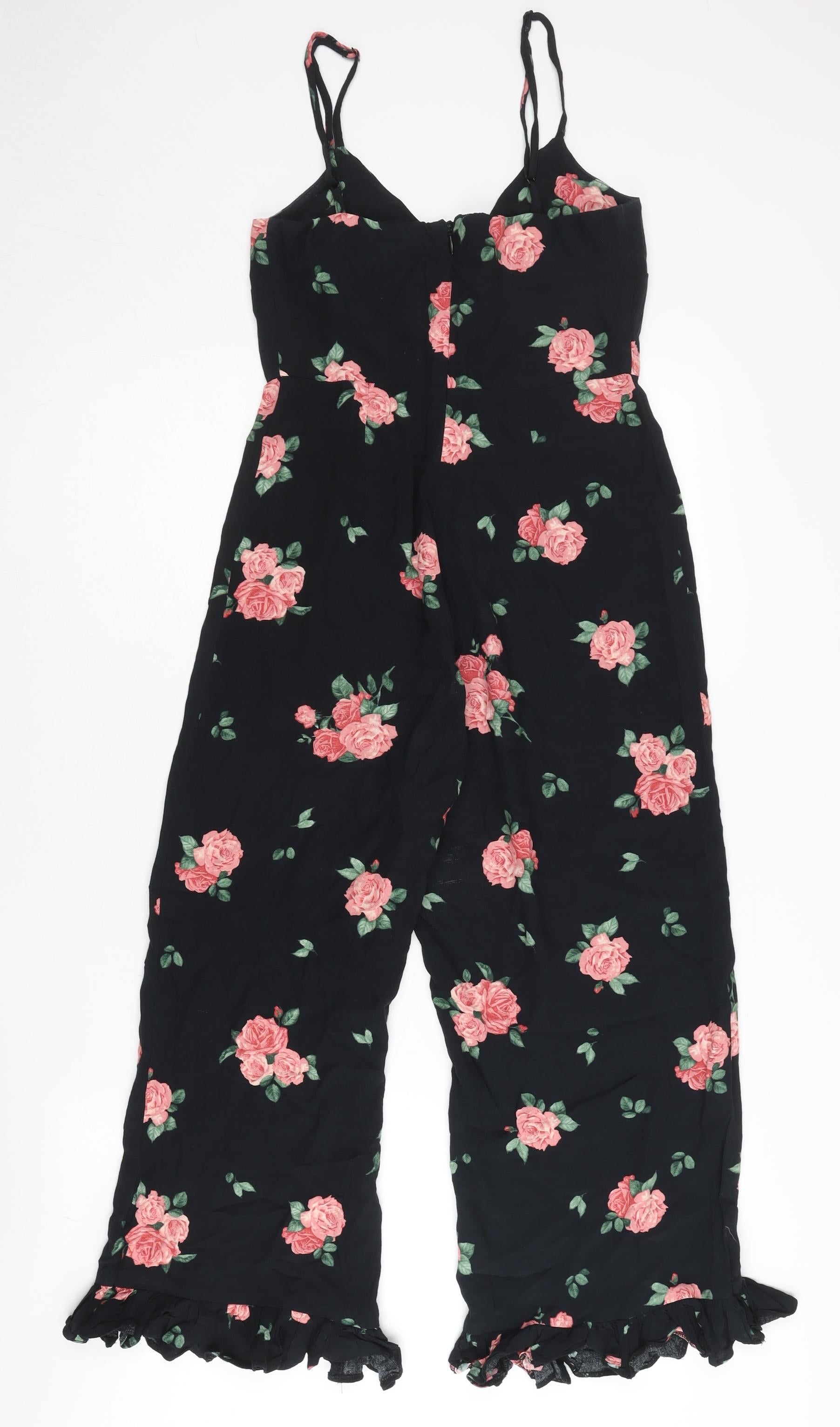 Nobody's Child Women's Black Floral Wide-Leg Sleeveless Jumpsuit Size 8