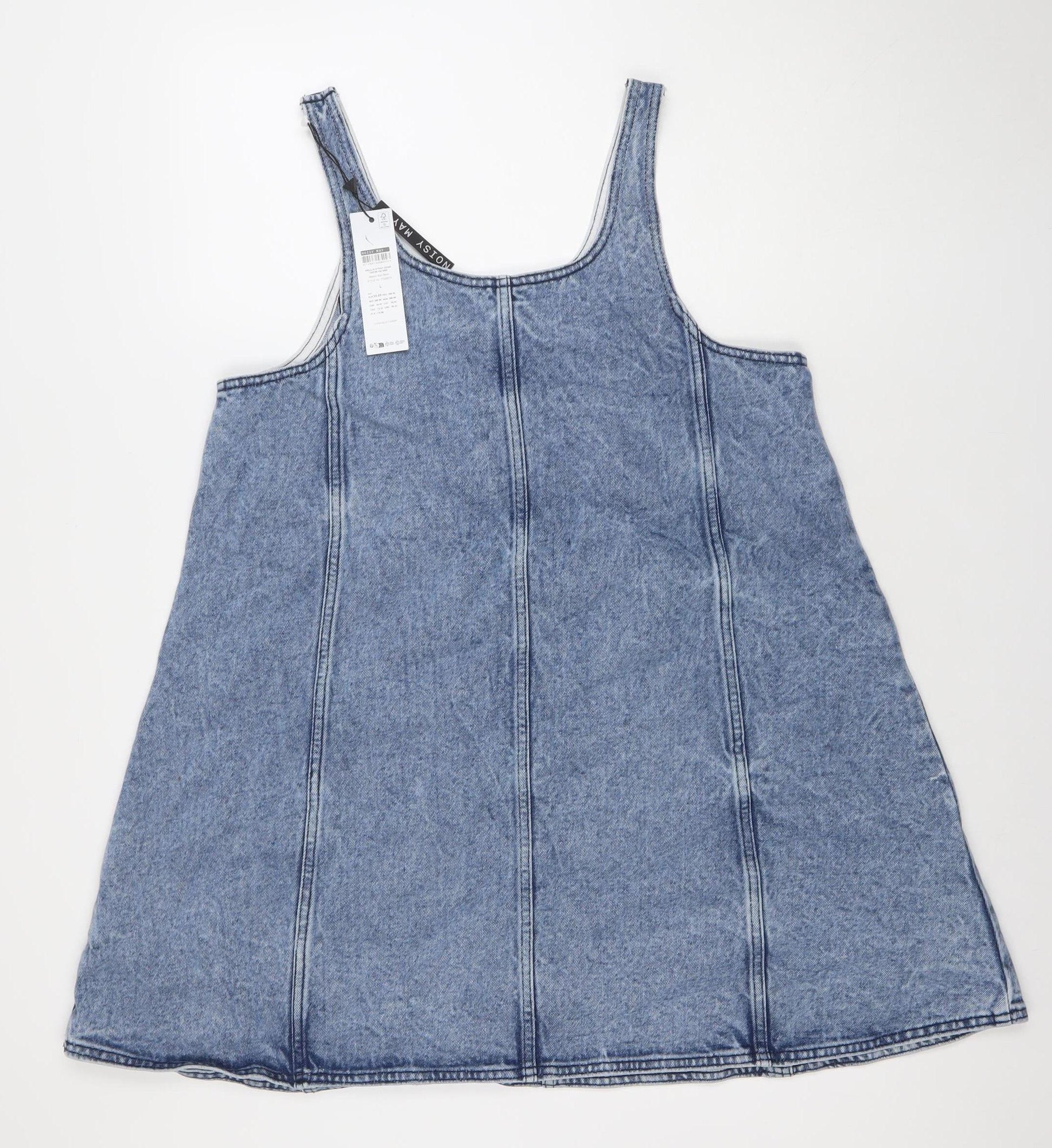 Noisy May Women’s Blue Denim Pinafore Dress Size L Casual Sleeveless