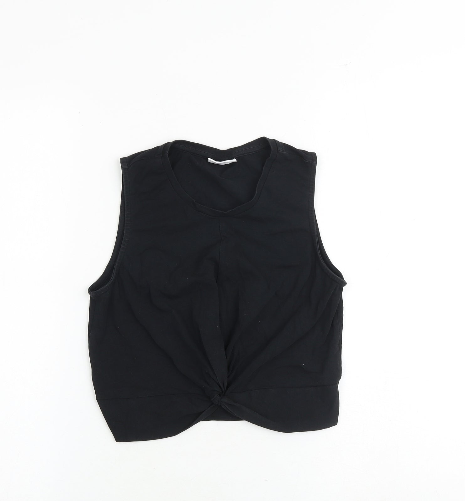 Noisy may Womens Black 100% Cotton Cropped Tank Size M Round Neck - Twist Detail