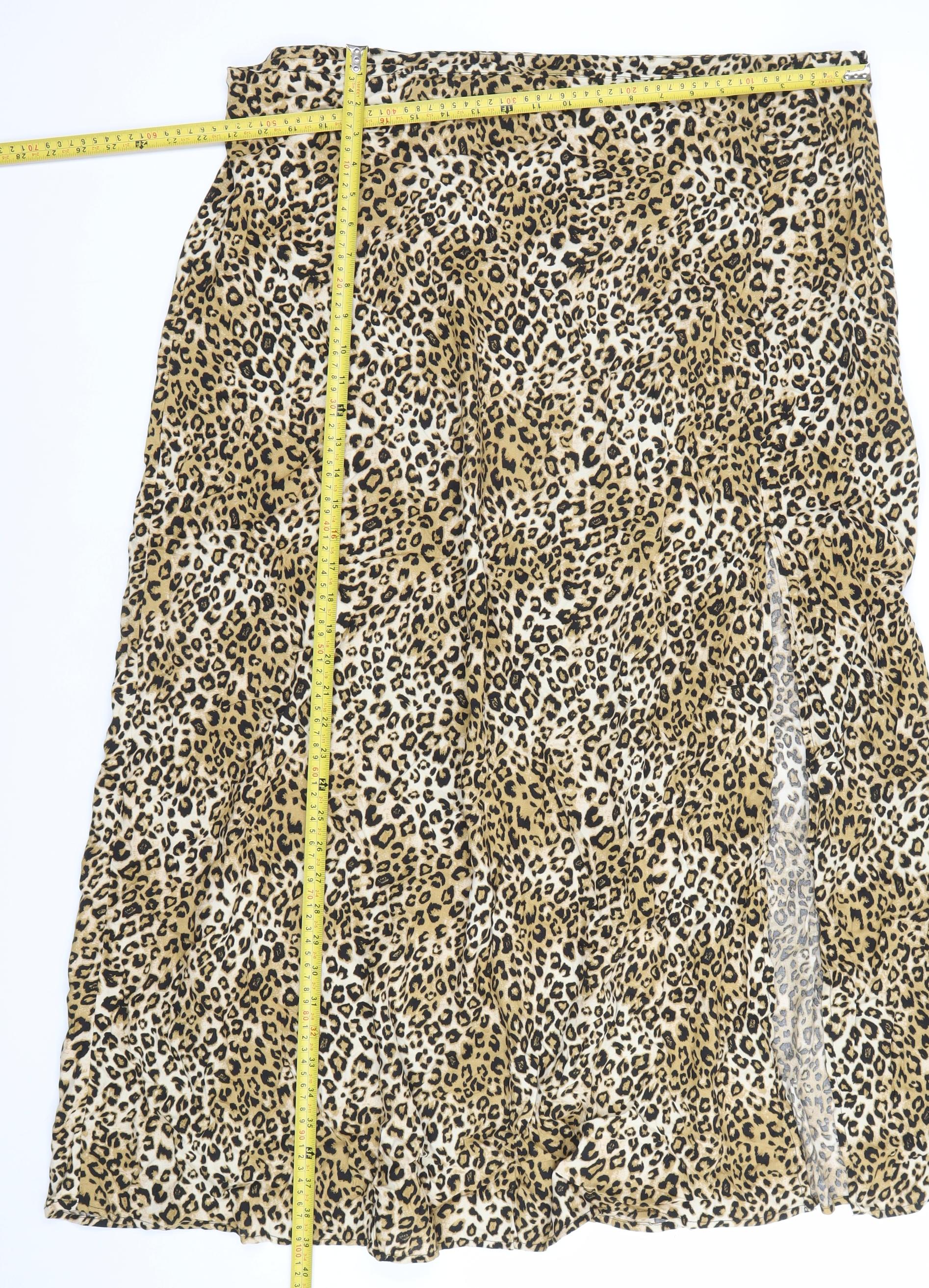 Noisy May Women's Brown Leopard A-Line Midi Skirt Size 16 Viscose