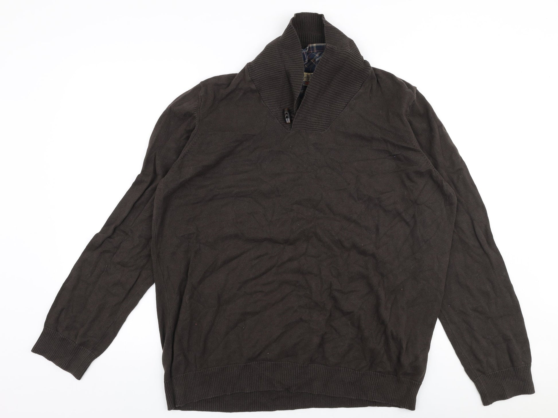 North Coast Mens Brown Collared Cotton Pullover Jumper Size 2XL