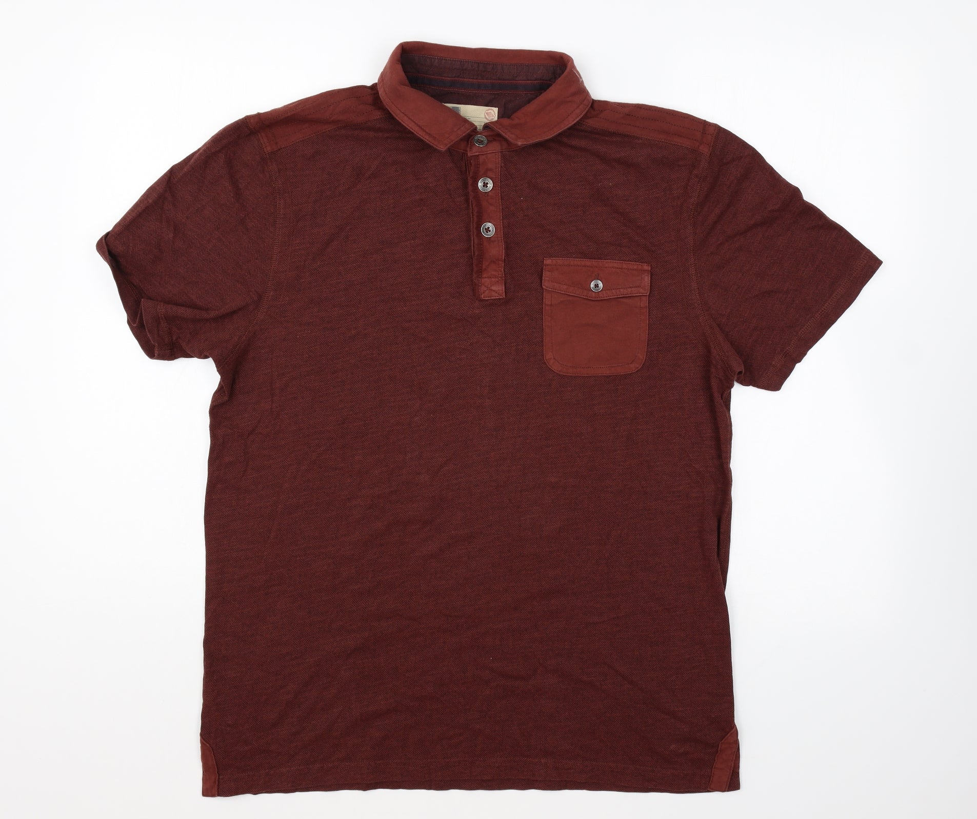 North Coast Mens Brown Cotton Polo Size M Collared Button