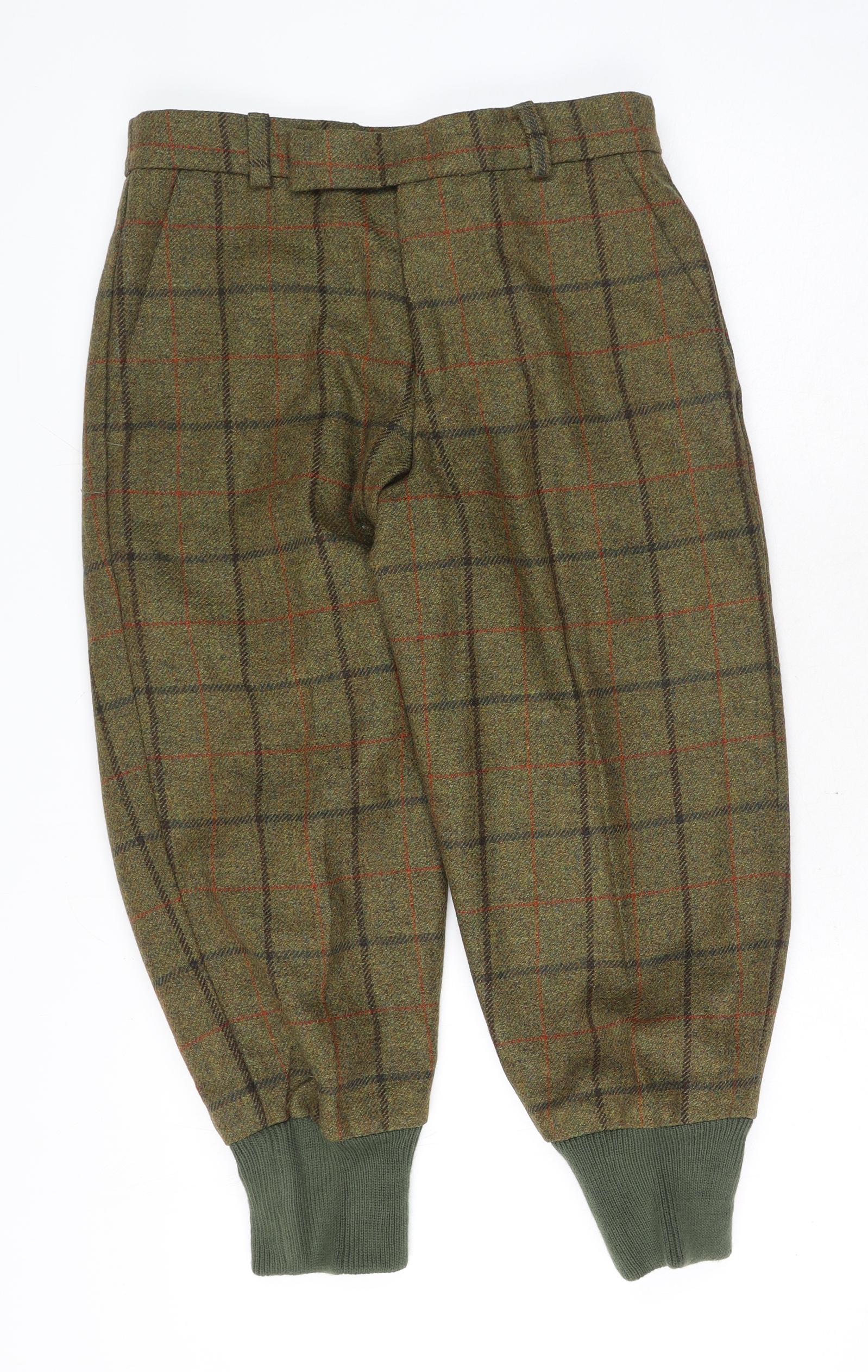 Northallerton Countrywear Mens Green Plaid Cotton Trousers Size 32 in L25 in Regular Hook & Eye