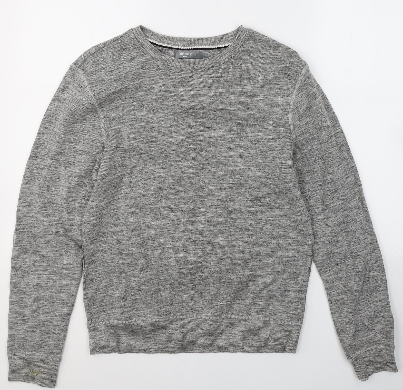 Nutmeg Mens Grey Round Neck Cotton Pullover Jumper Size S