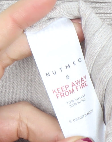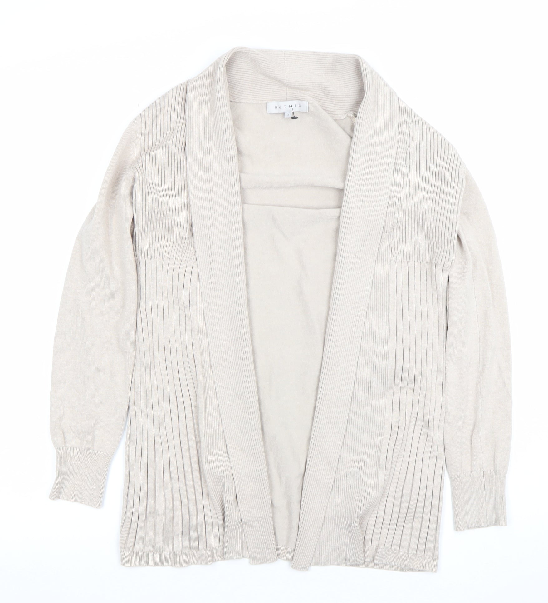 Nutmeg Women Beige Knit Open Cardigan Size 8 Long Sleeve