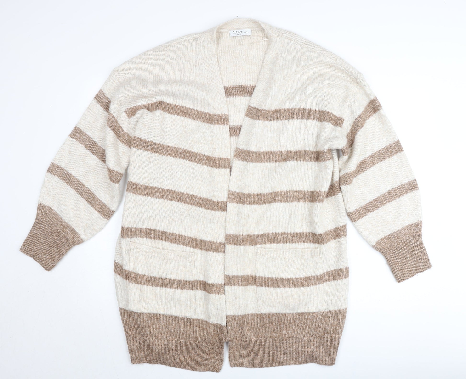 Nutmeg Women Beige Stripe Knit Cardigan Size 16 Plus Long Sleeve