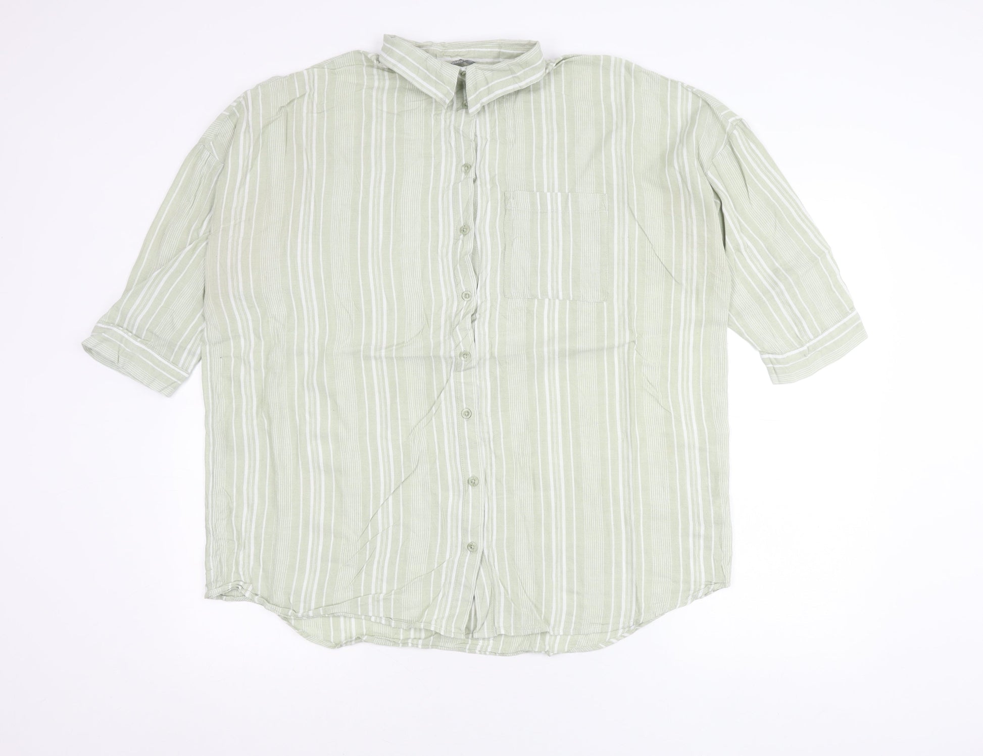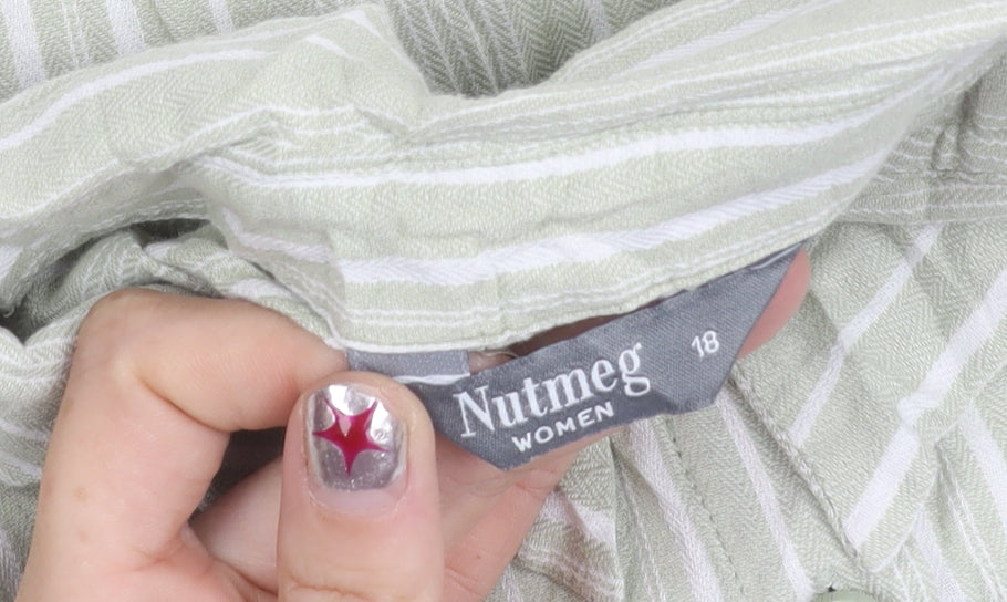 Nutmeg Women Green Striped Cotton Button-Up Shirt Size 18