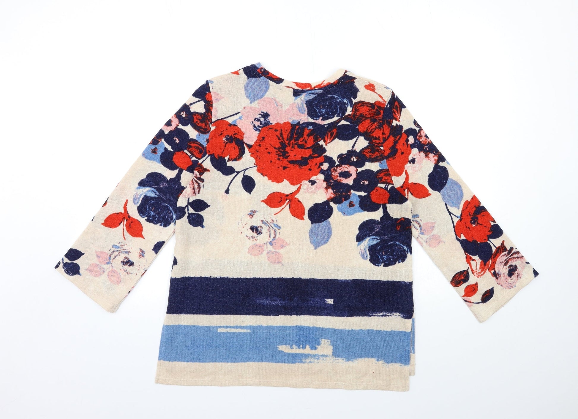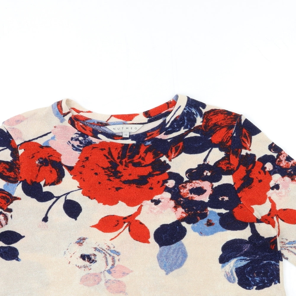 Nutmeg Womens Beige Floral Knit Pullover Jumper Size 10