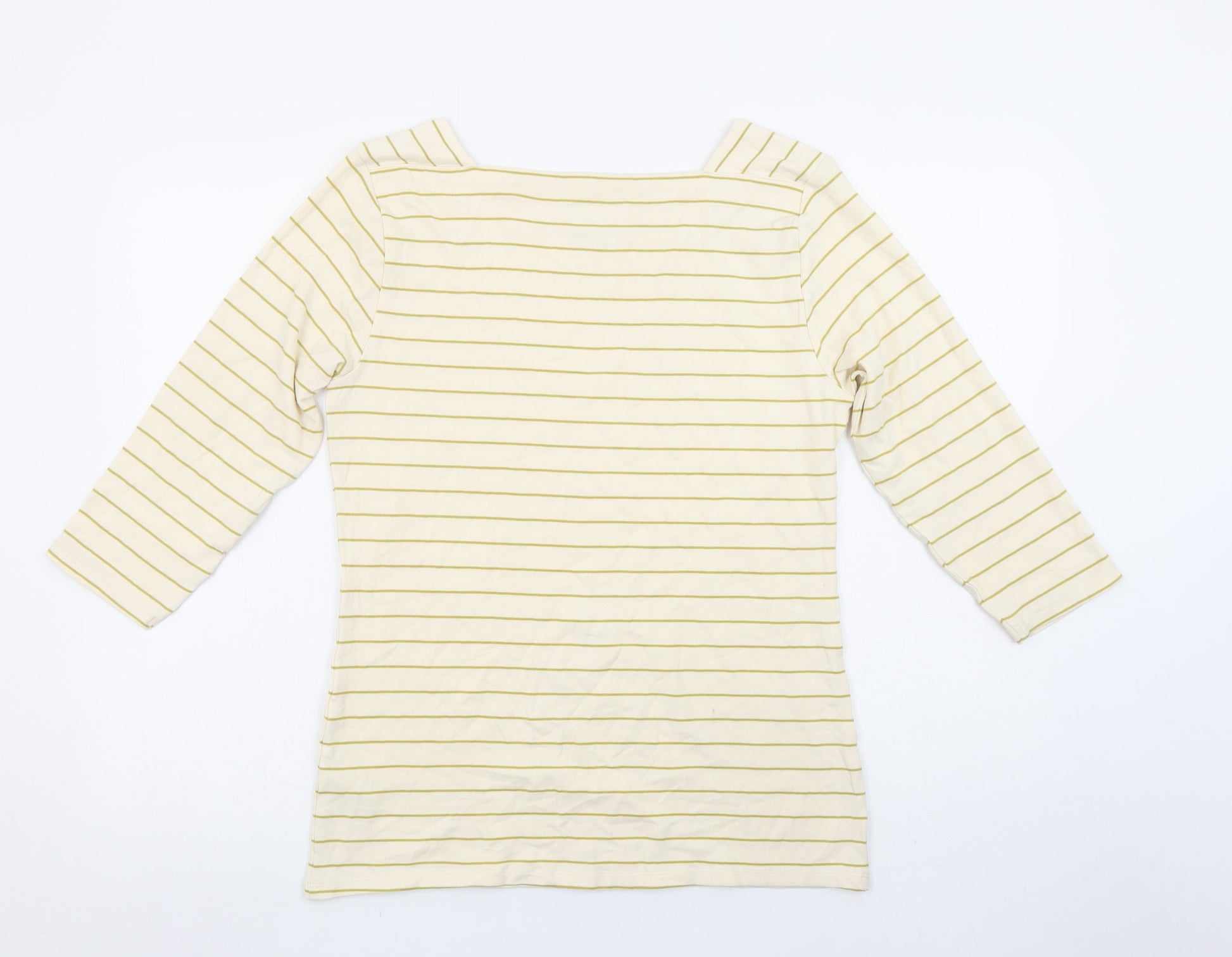 Nutmeg Womens Beige Striped Boat Neck 3/4 Sleeve T-Shirt Size 16