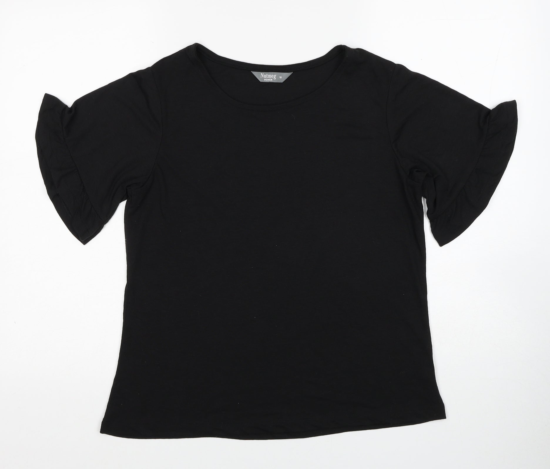 Nutmeg Womens Black Polyester Basic T-Shirt Size 10 Round Neck