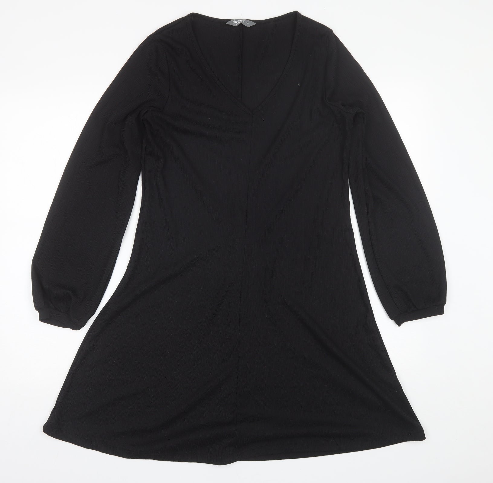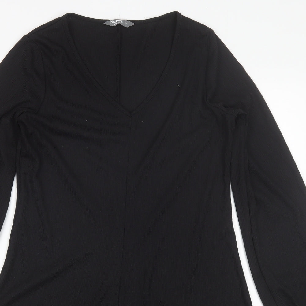 Nutmeg Womens Black Polyester Shift Size 10 V-Neck