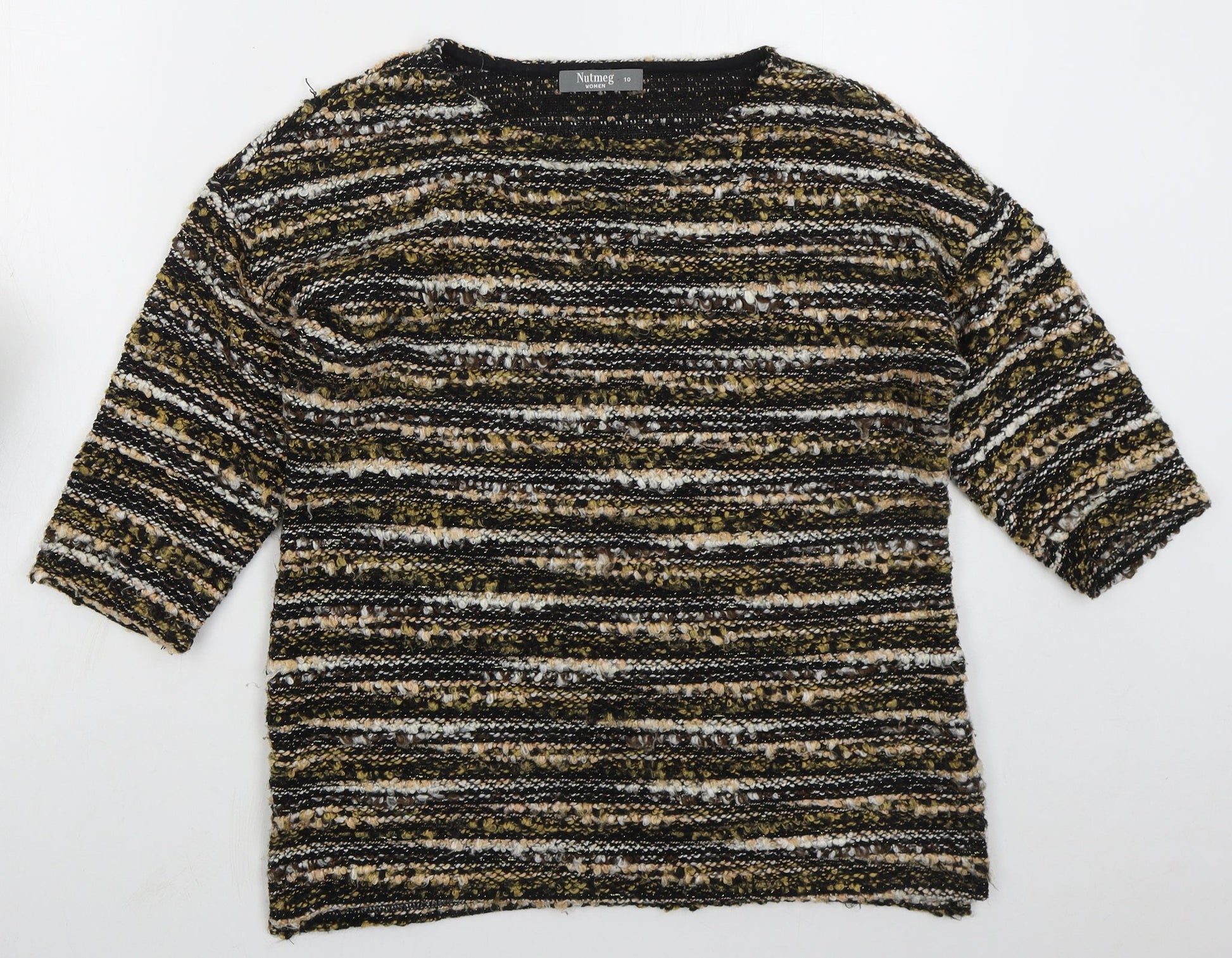 Nutmeg Womens Gold Round Neck Striped Acrylic Pullover Jumper Size 10