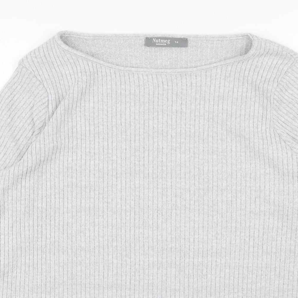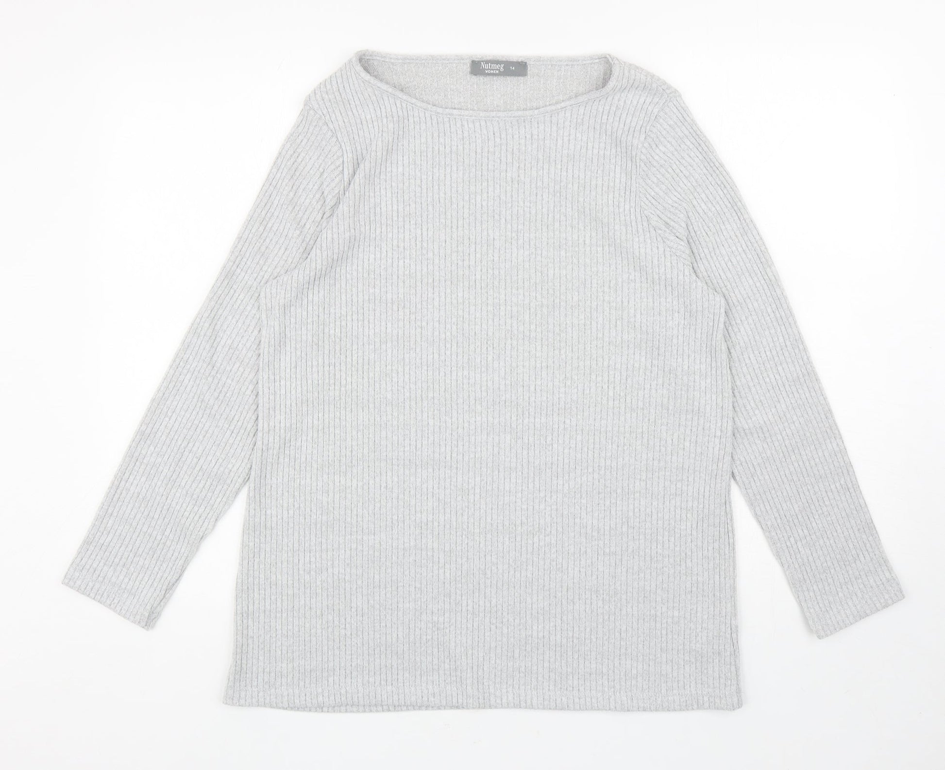 Nutmeg Womens Grey Boat Neck Polyester Pullover Jumper Size 14