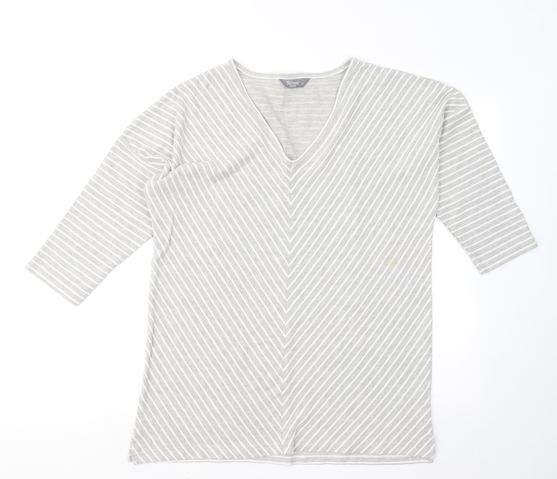 Nutmeg Womens Grey Striped Cotton Basic T-Shirt Size 12 V-Neck