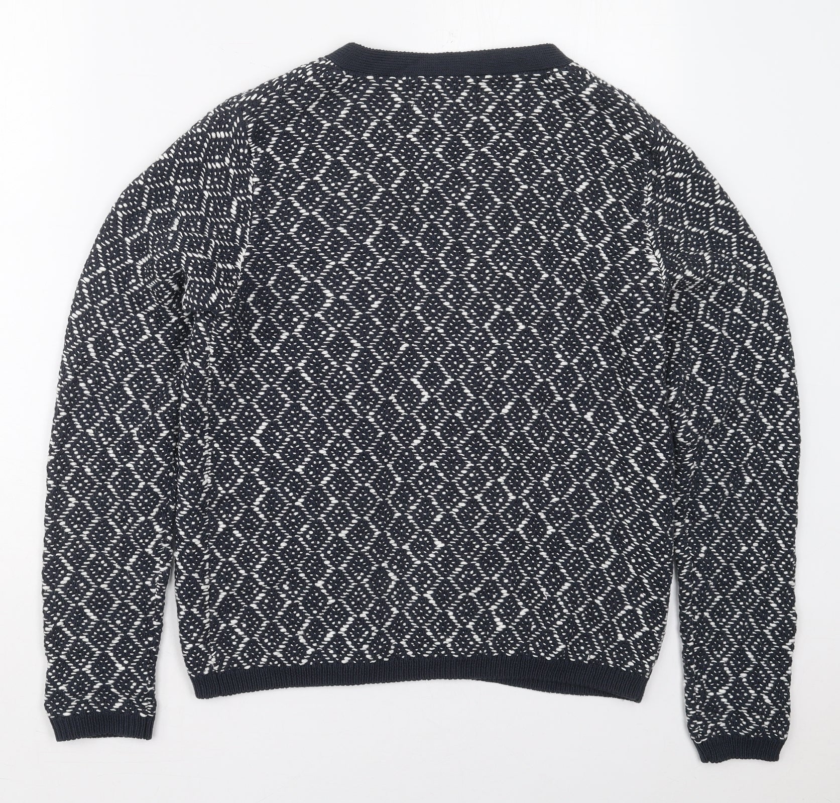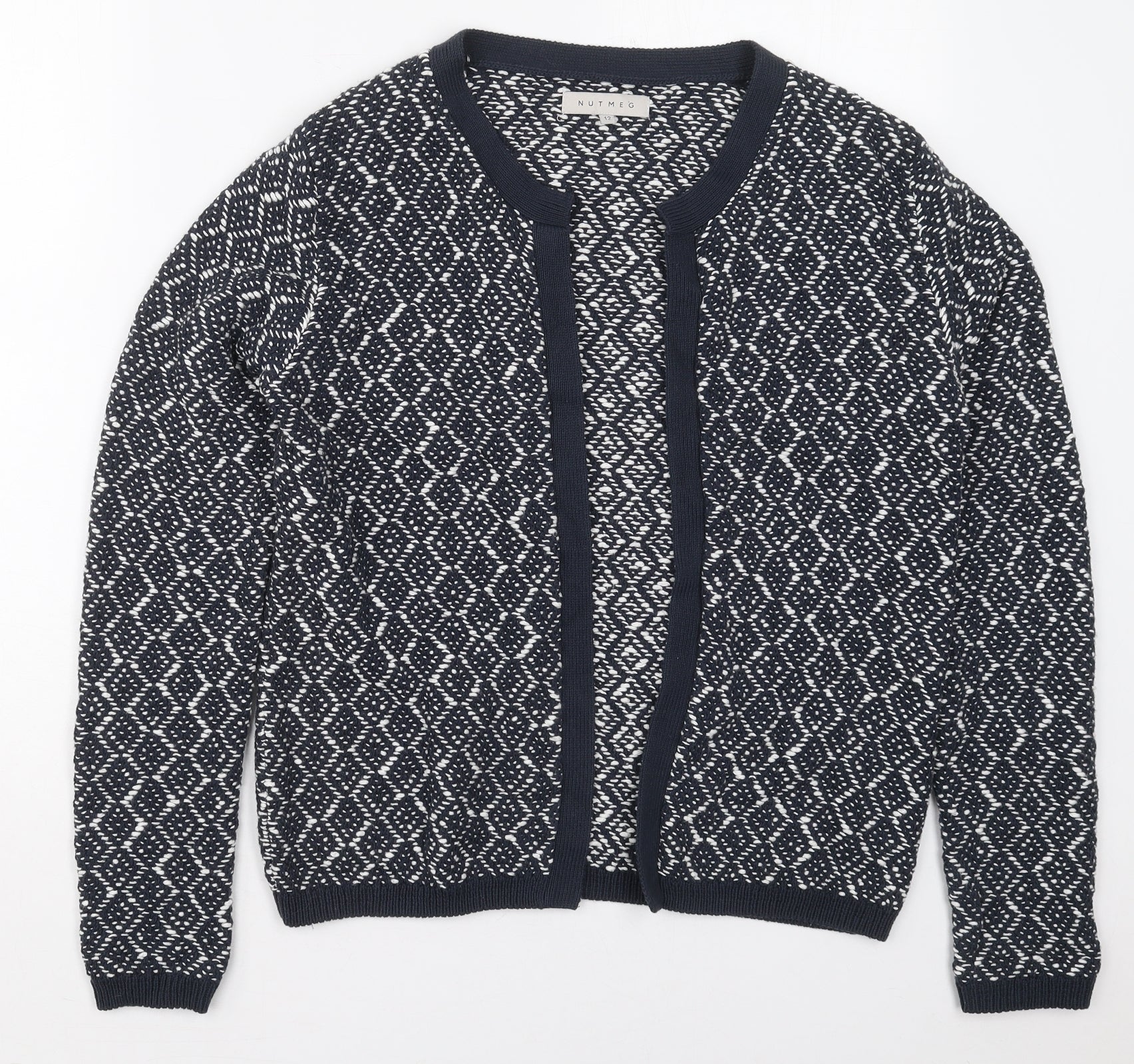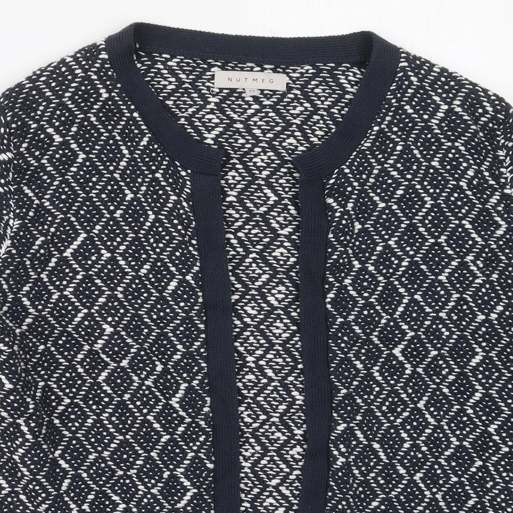 Nutmeg Womens Grey V-Neck Geometric Cotton Cardigan Jumper Size 12