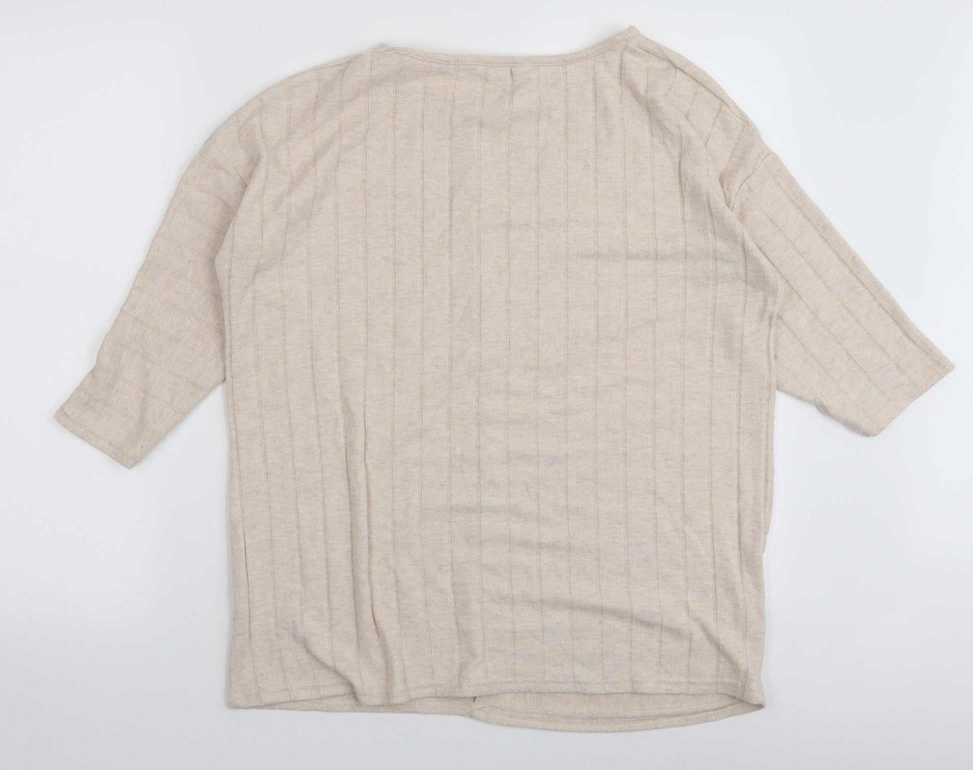 Nutmeg Womens Ivory Round Neck Polyester Pullover Jumper Size 12