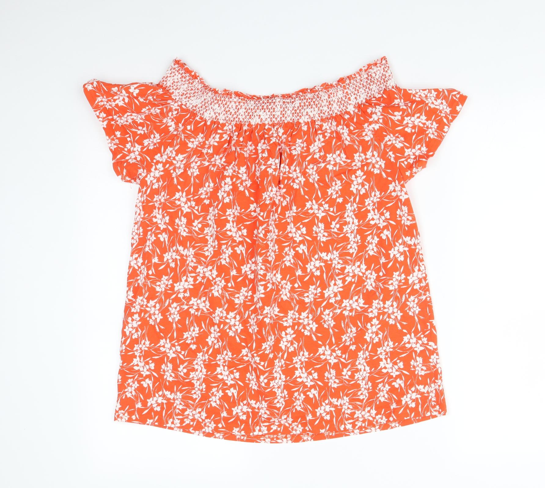 Nutmeg Womens Orange Floral Basic T-Shirt Size 12