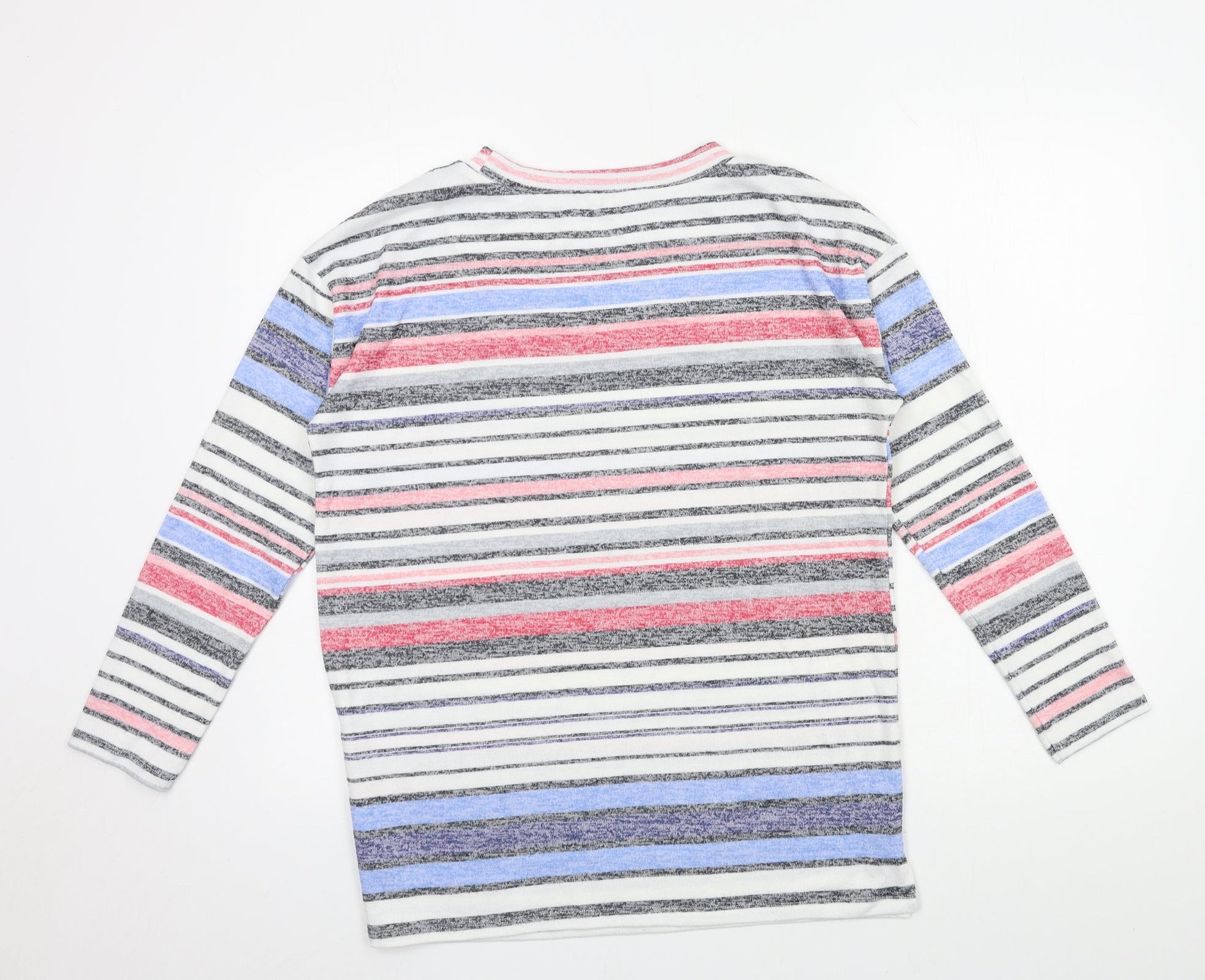 Nutmeg Womens White Striped Knit Basic T-Shirt Size 8