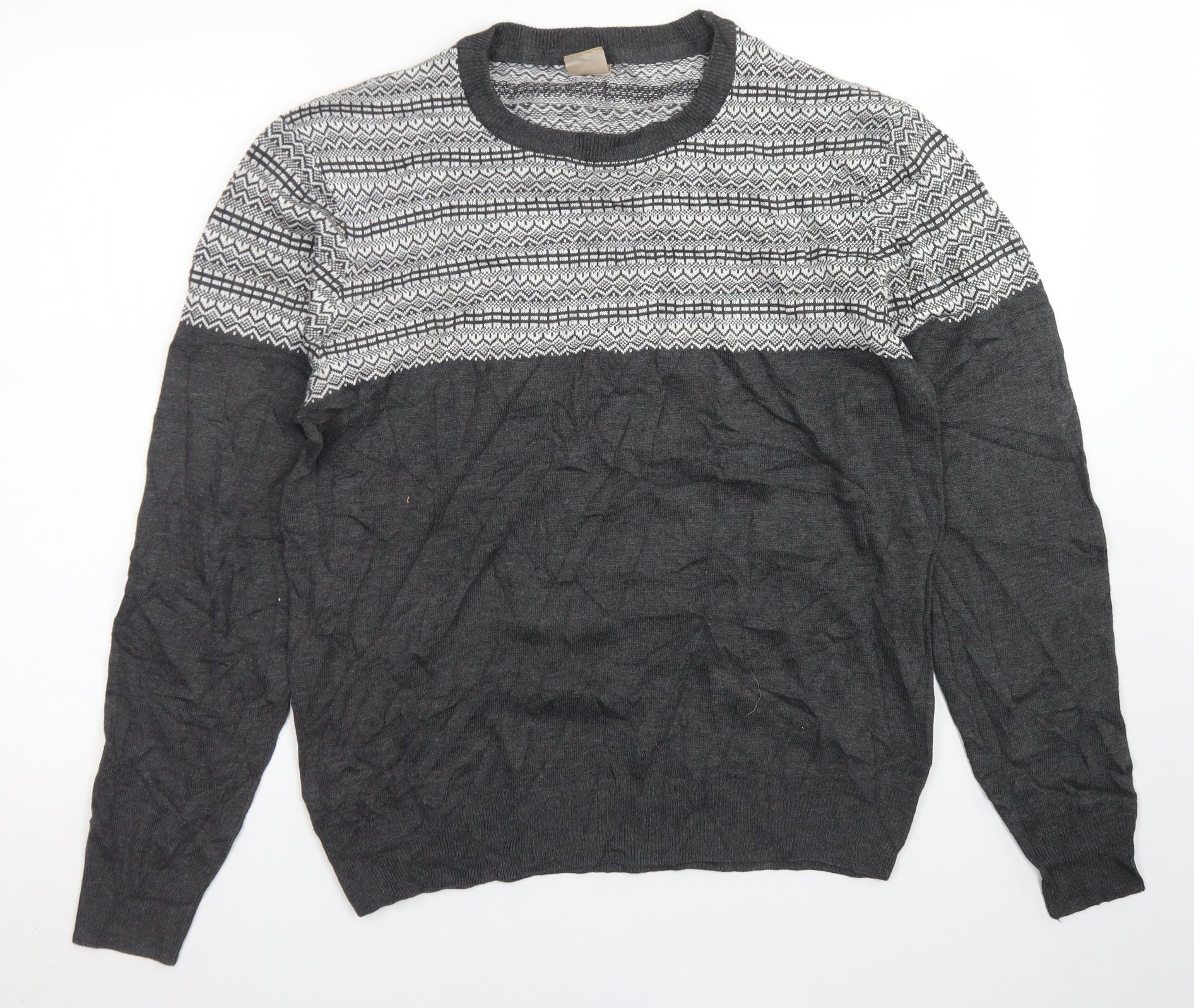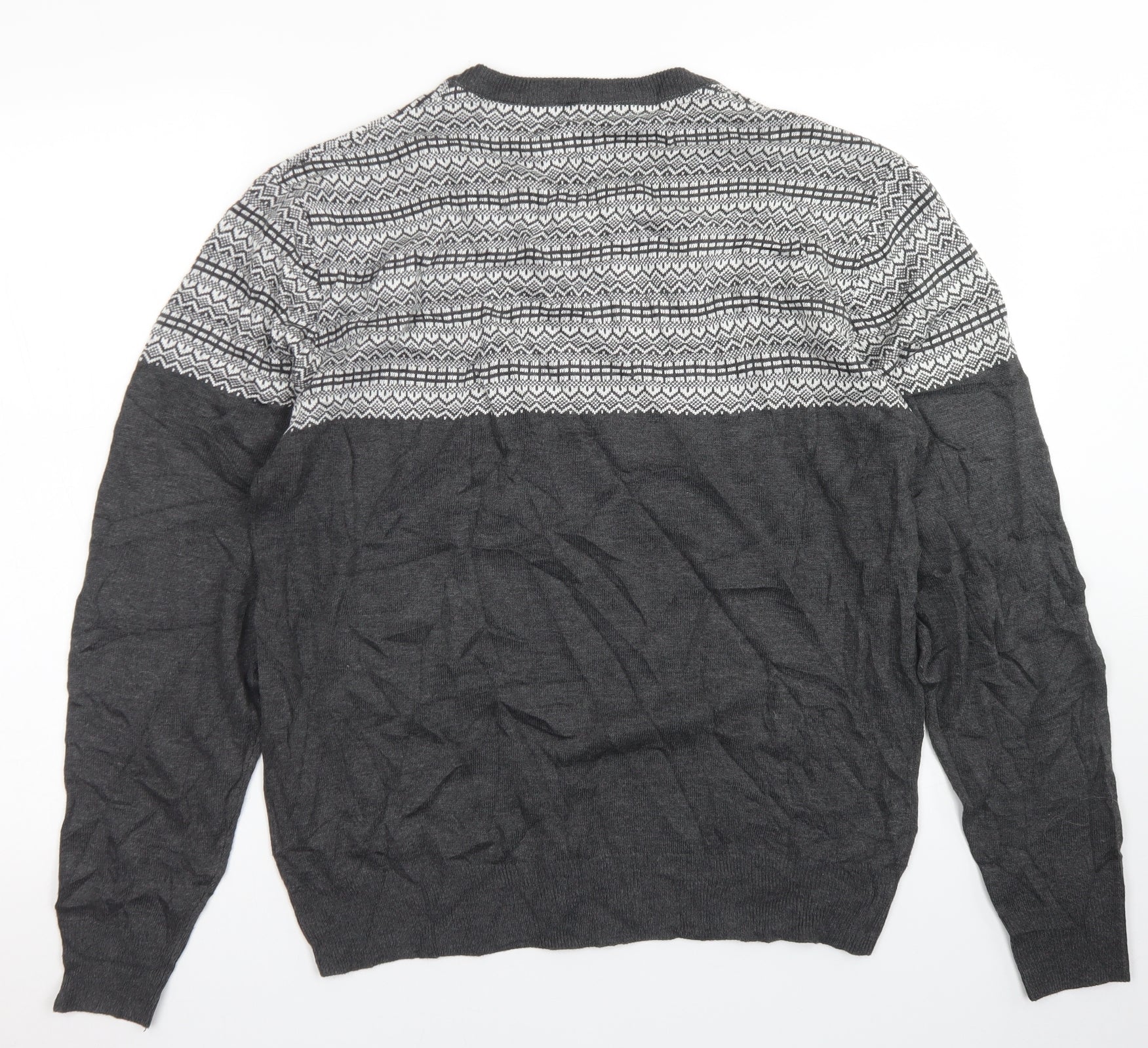 Oak Valley Mens Grey Crew Neck Fair Isle Acrylic Pullover Jumper Size M