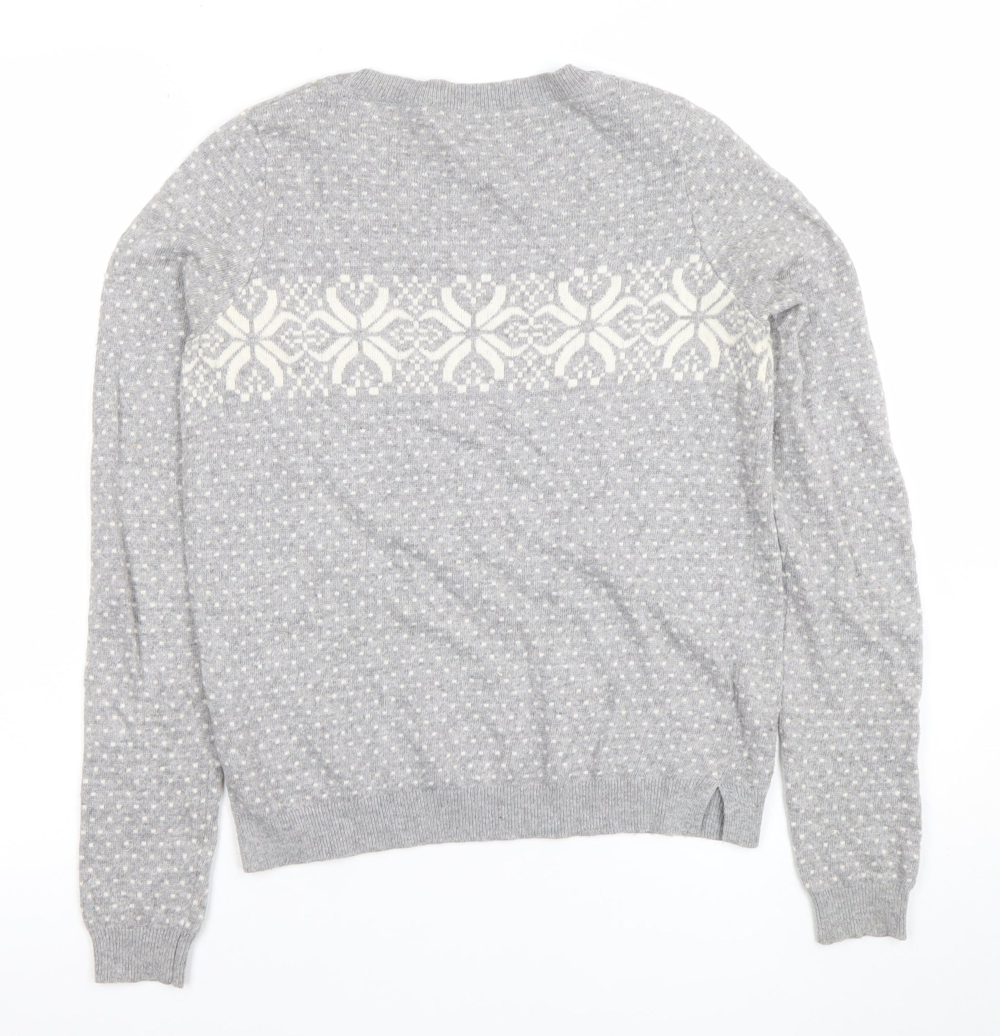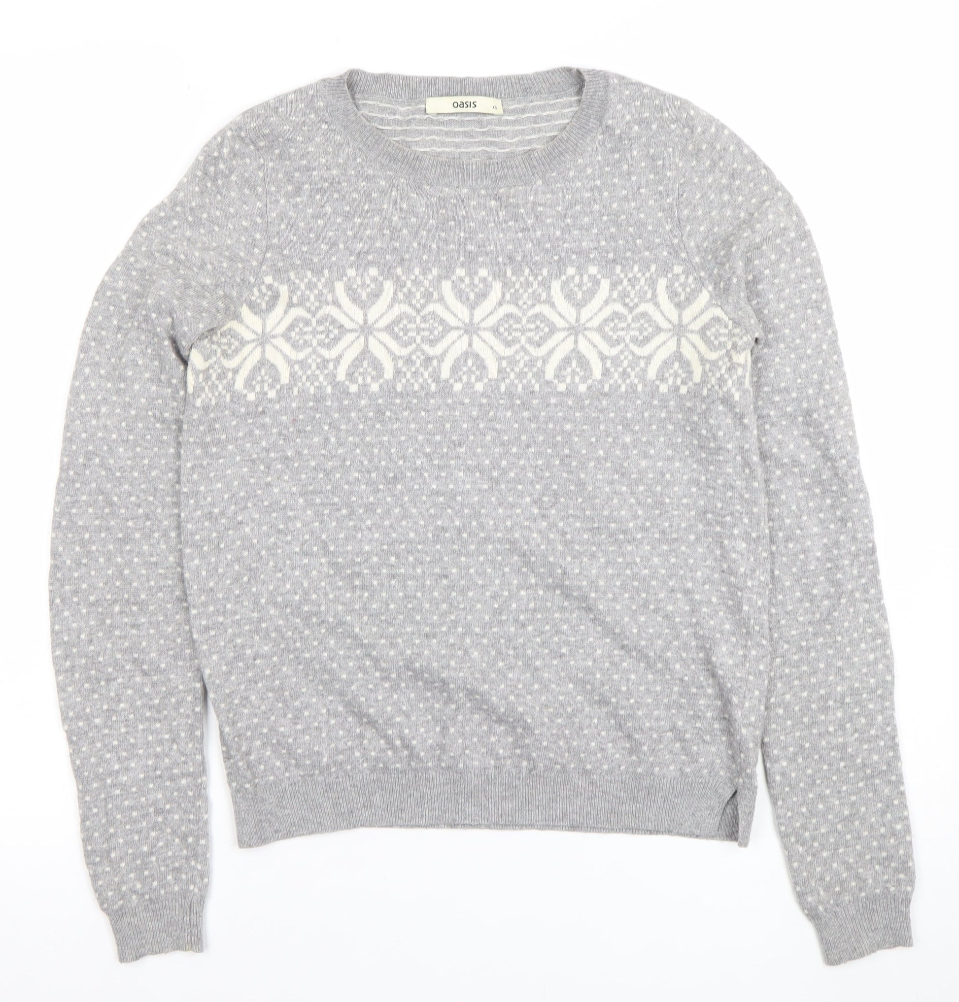 Oasis Girls Grey XS Fair Isle Crew Neck Pullover Jumper Winter Knit