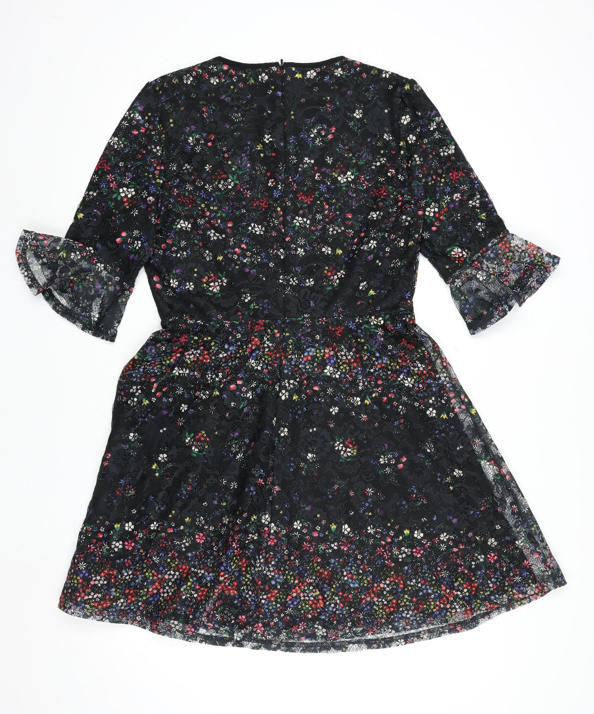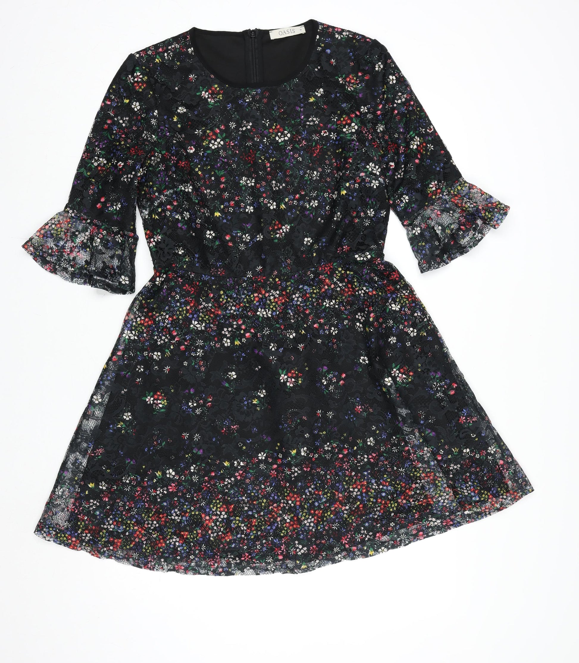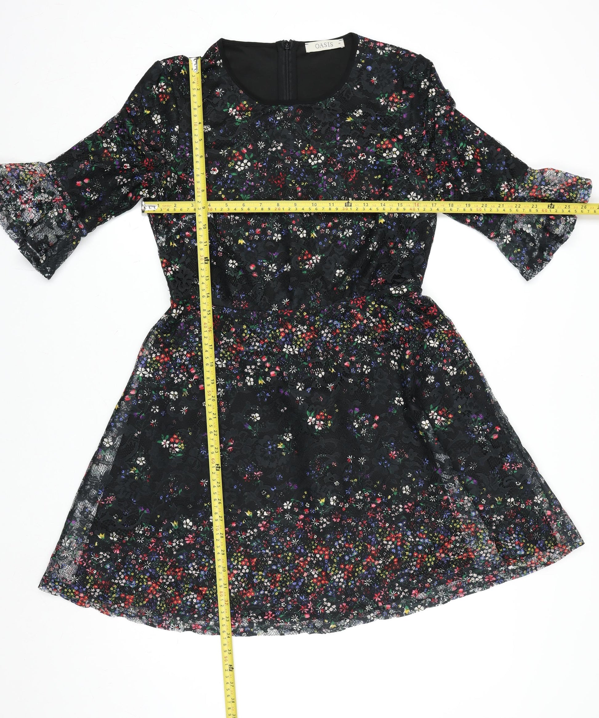 Oasis Women Black Floral Lace Fit & Flare Dress M Knee Length