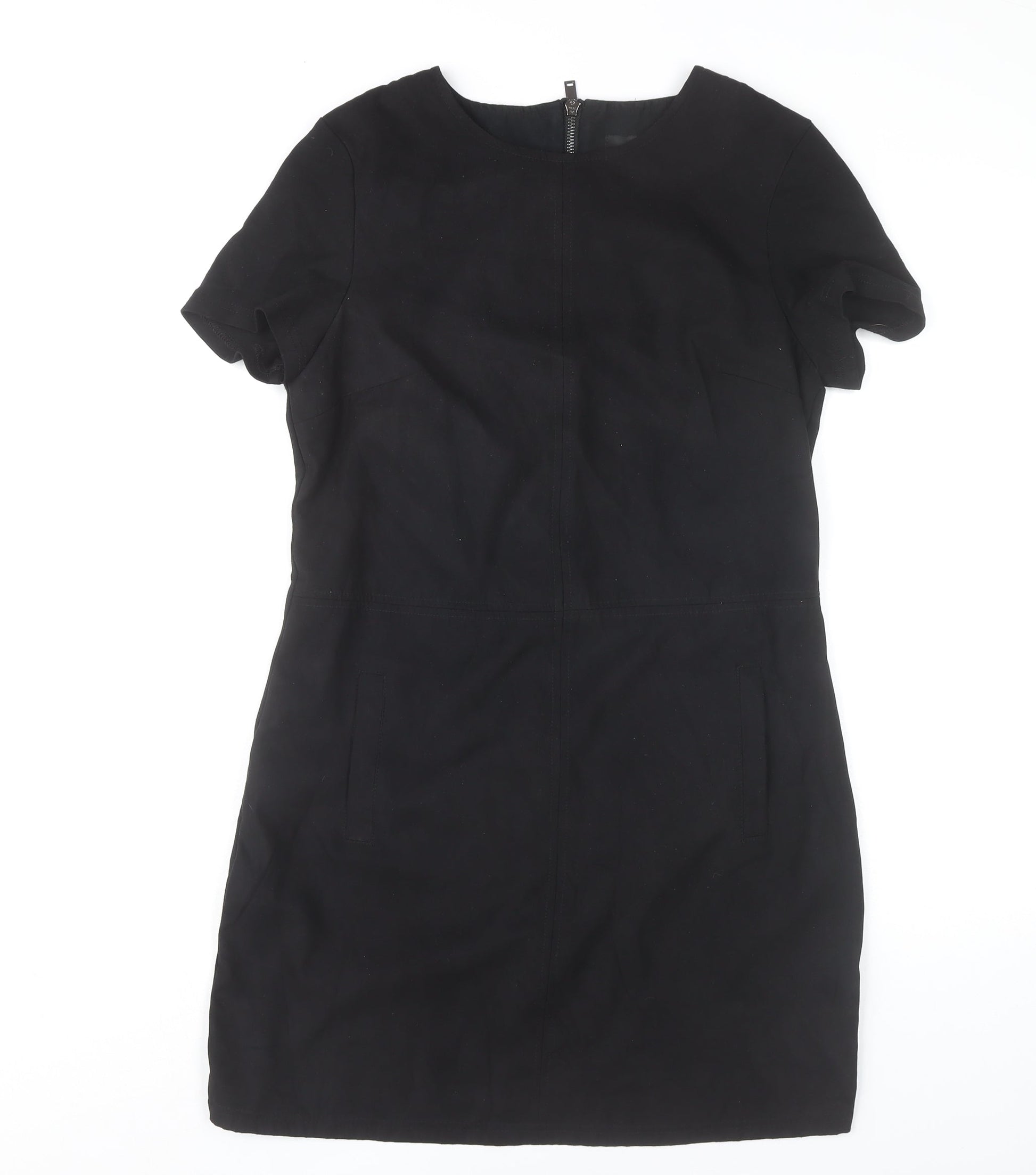 Oasis Women Black Shift Dress Size 12 Short Sleeve Workwear