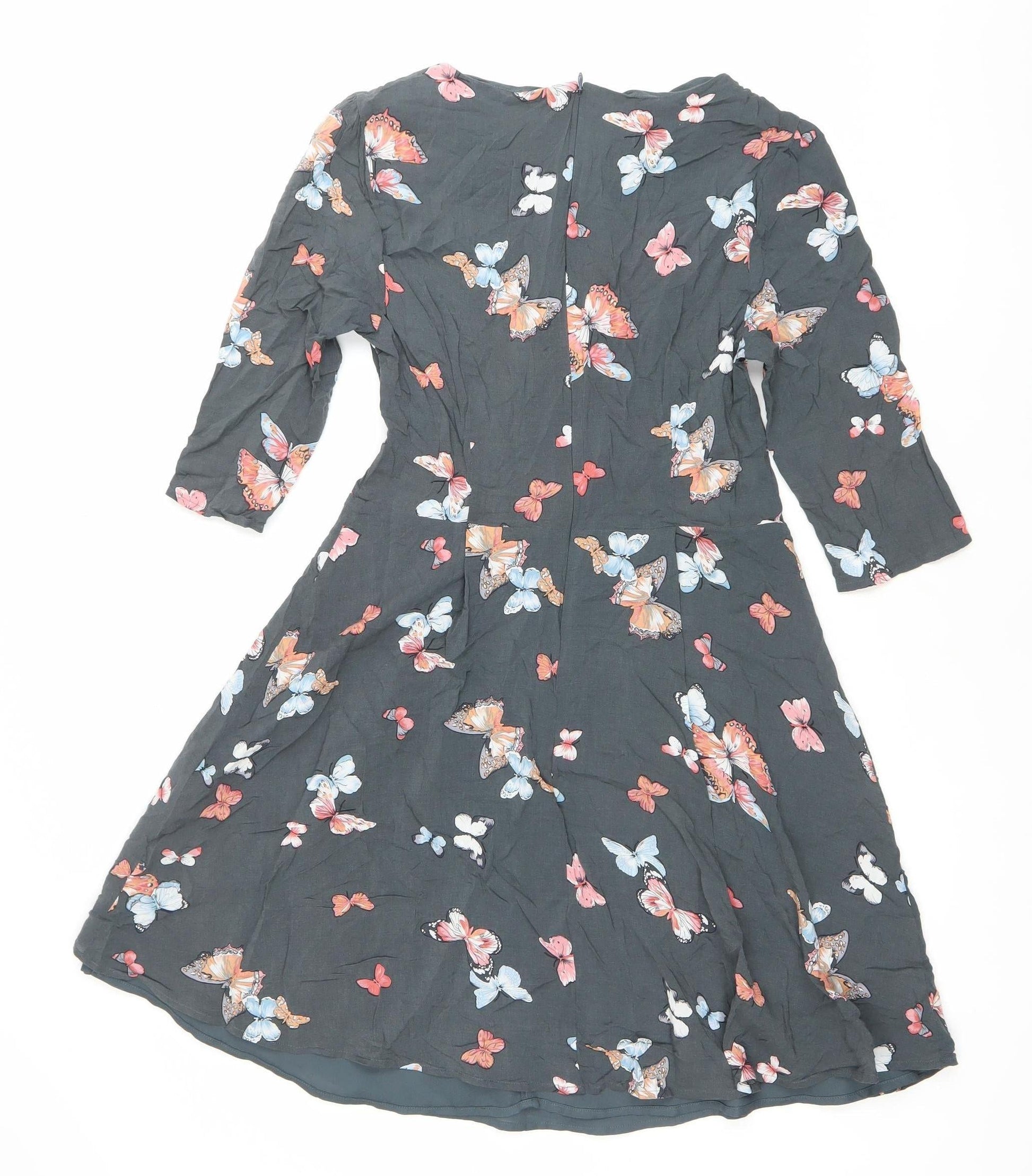 Oasis Women’s Black Butterfly Print A-Line Dress Size 10