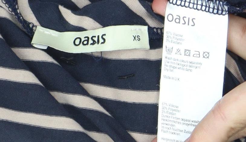 Oasis Women’s Blue Beige Striped Bodycon Dress XS Scoop Neck 3/4 Sleeve