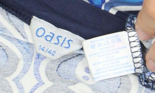 Oasis Women’s Blue Geometric Slip Dress Size 14 Midi Summer