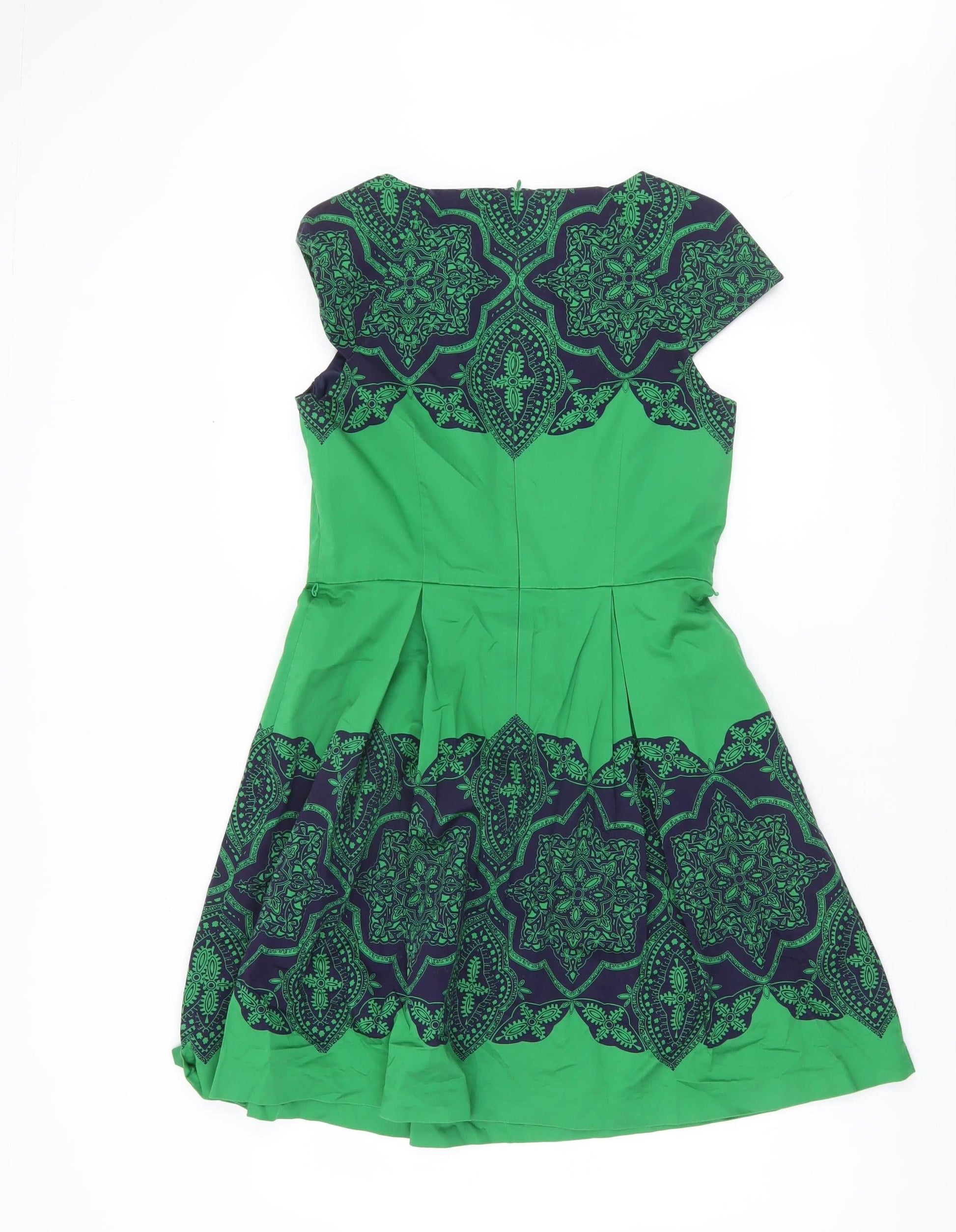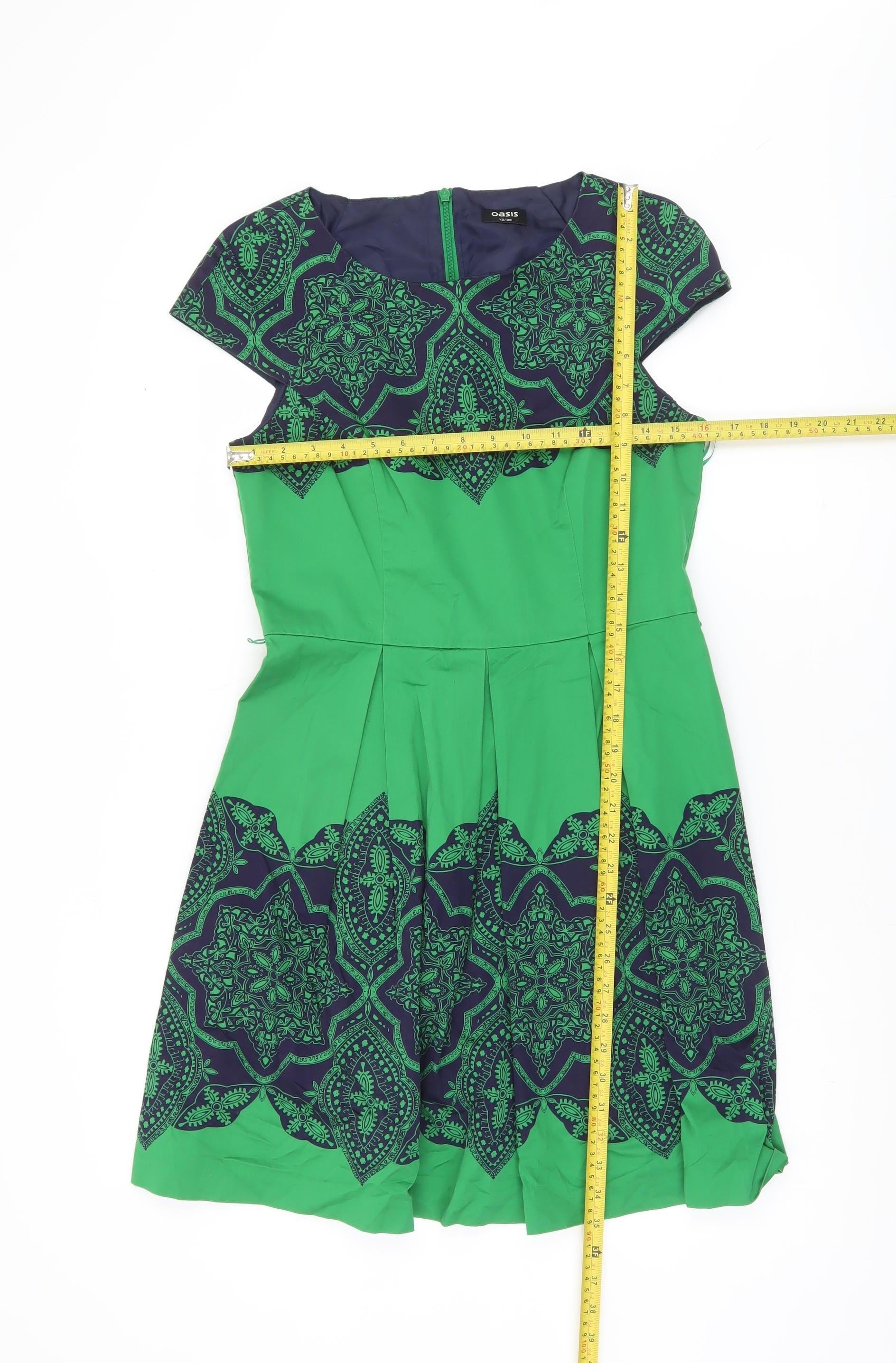 Oasis Women’s Green Blue Geometric A-Line Skirt Size 12 Knee Length Pleated