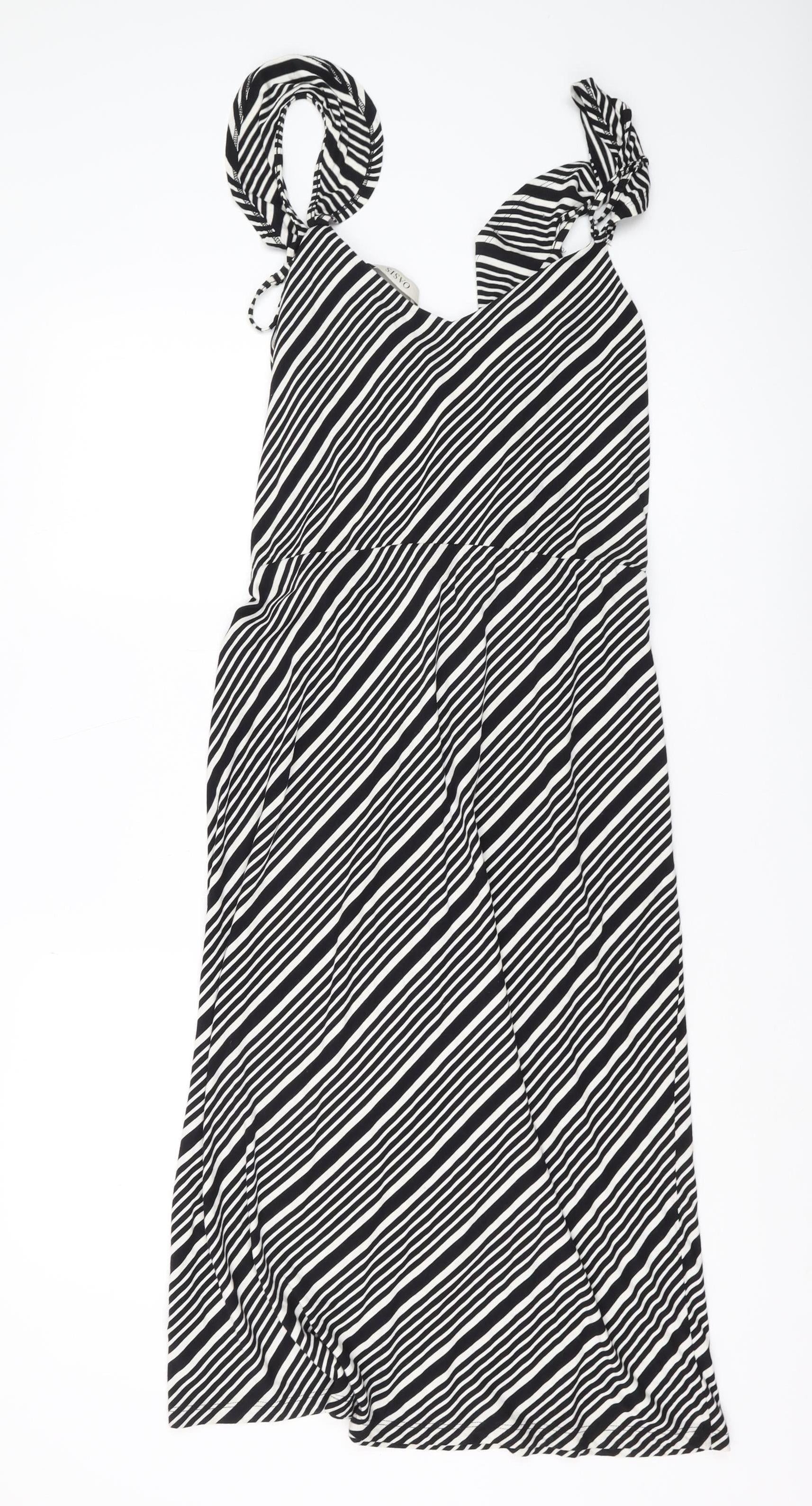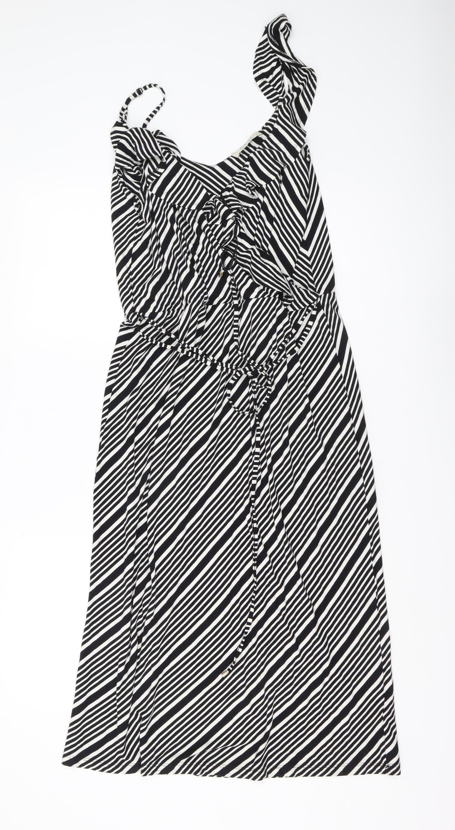 Oasis Women’s L Black Striped Dress, Ruffle Detail