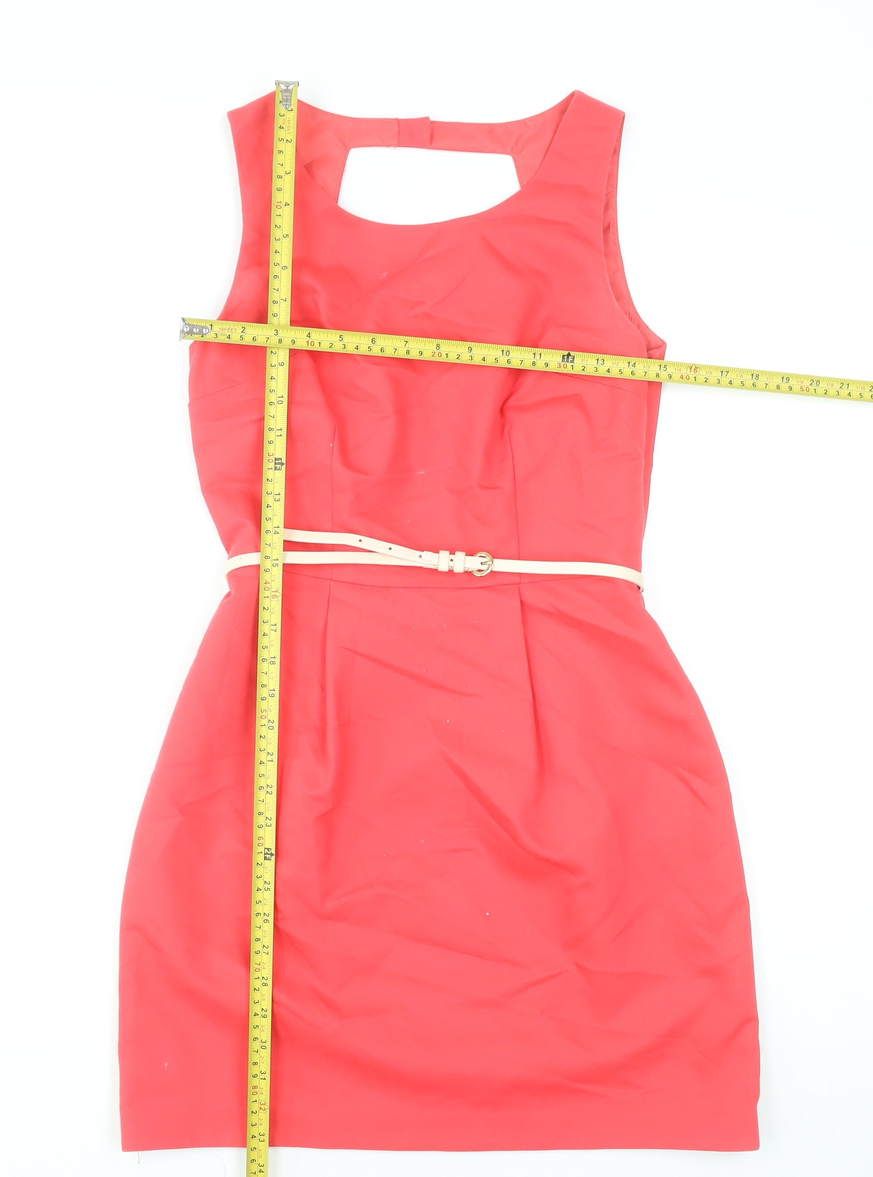 Oasis Women’s Red Sleeveless Sheath Dress Size 10 Belted Knee Length