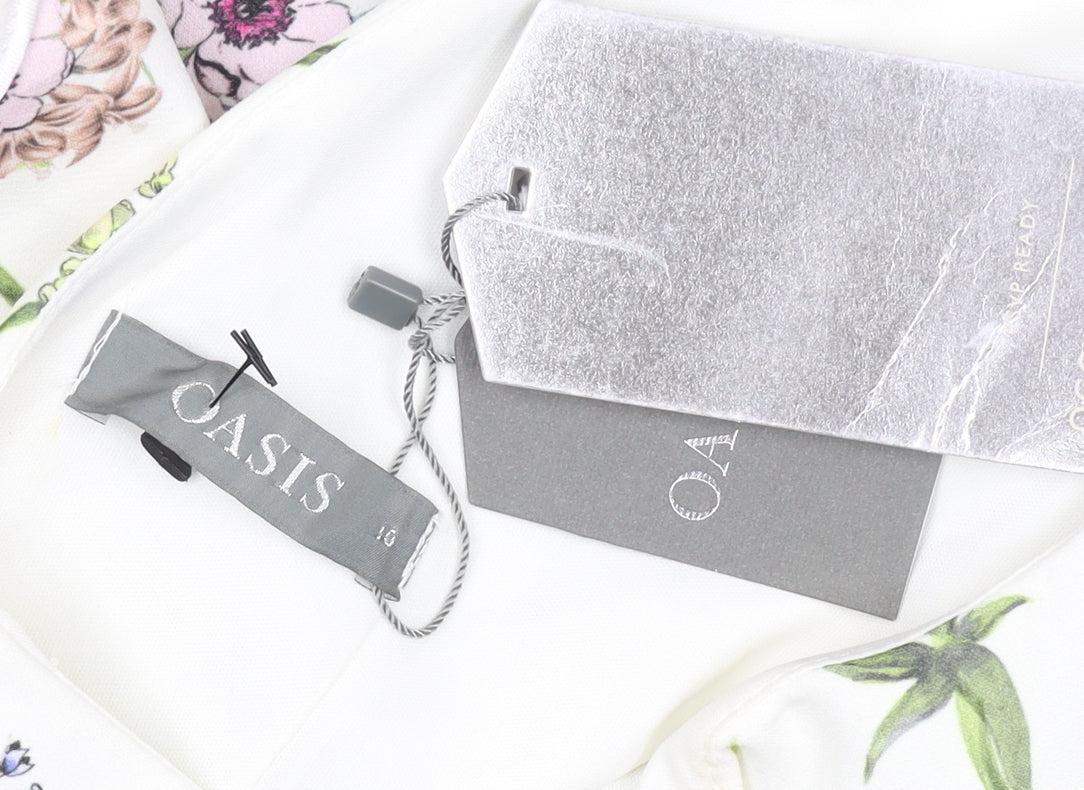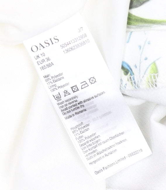 Oasis Women White Floral Shift Dress Size 10 Knee Length 3/4 Sleeve